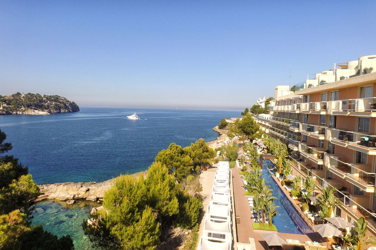 В 33 км от аэропорта, в 25 км от центра города Пальма, в 1,5 км от центра туристической зоны Санта - Понса, на первой линии, в 1000 м от песчаного пляжа Санта - Понса.
