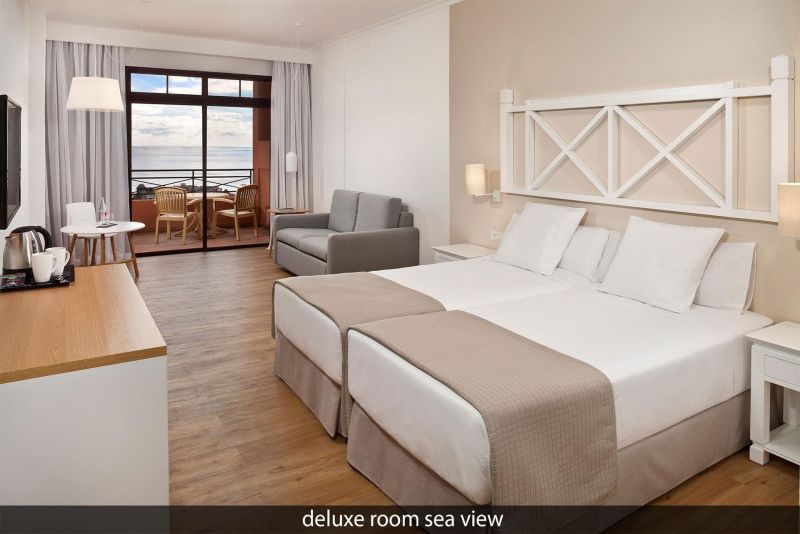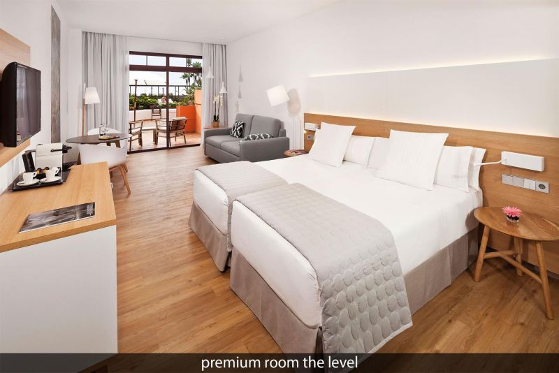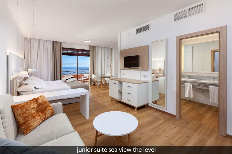 - Junior Suite Level Sea View (в номере есть спальня с двумя односпальными кроватями, превращающимися в 1-спальную кровать king-size, терраса с шезлонгами, кофемашина Nespresso и выбор сортов кофе с бесплатным пополнением капсул, электрический чайник и набор для чая, мини-динамик с Bluetooth, вид на океан)