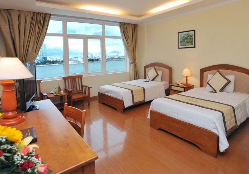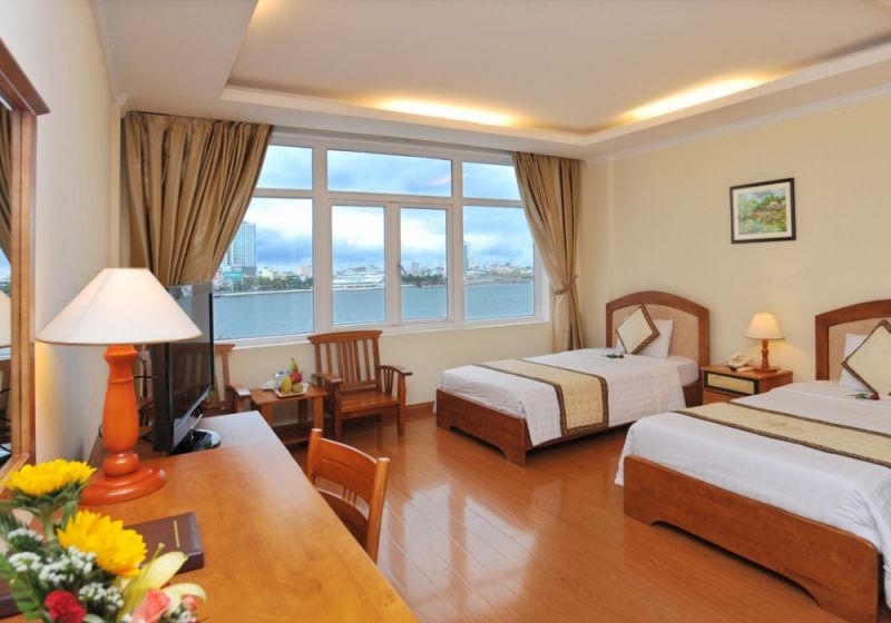 Twin Deluxe Riverview/Cityview Room: 35кв.м., двухместный улучшенный однокомнатный номер с современной мебелью, двумя односпальными раздельными кроватями(1.2х2м), возможна установка доп.кровати, видом на город или реку