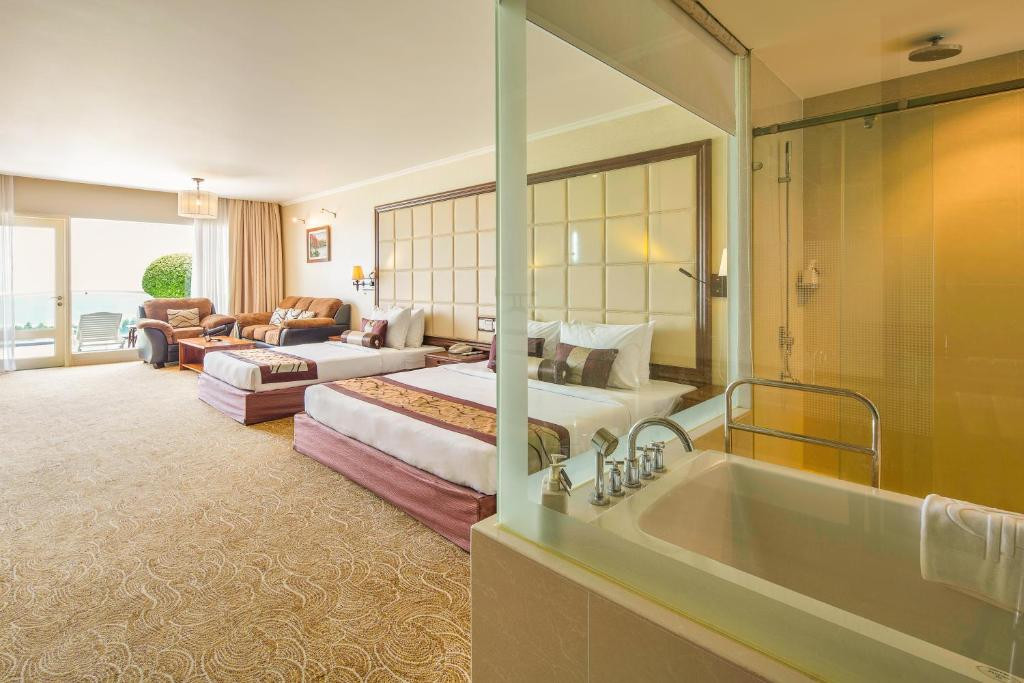 Отель был открыт в 2010 г. Состоит из главного 6-этажного здания с 4 лифтами и 315 вилл. Все номера и виллы полной комплектации. Отличная зеленая территория, трансфер на пляж, несколько баров, 4 бассейна. Можно воспользоваться услугами массажа, спа-процедурами,, посетить фитнес-центр. В отеле запрещено размещение с животными. При размещении взимается залог — загранпаспорт.