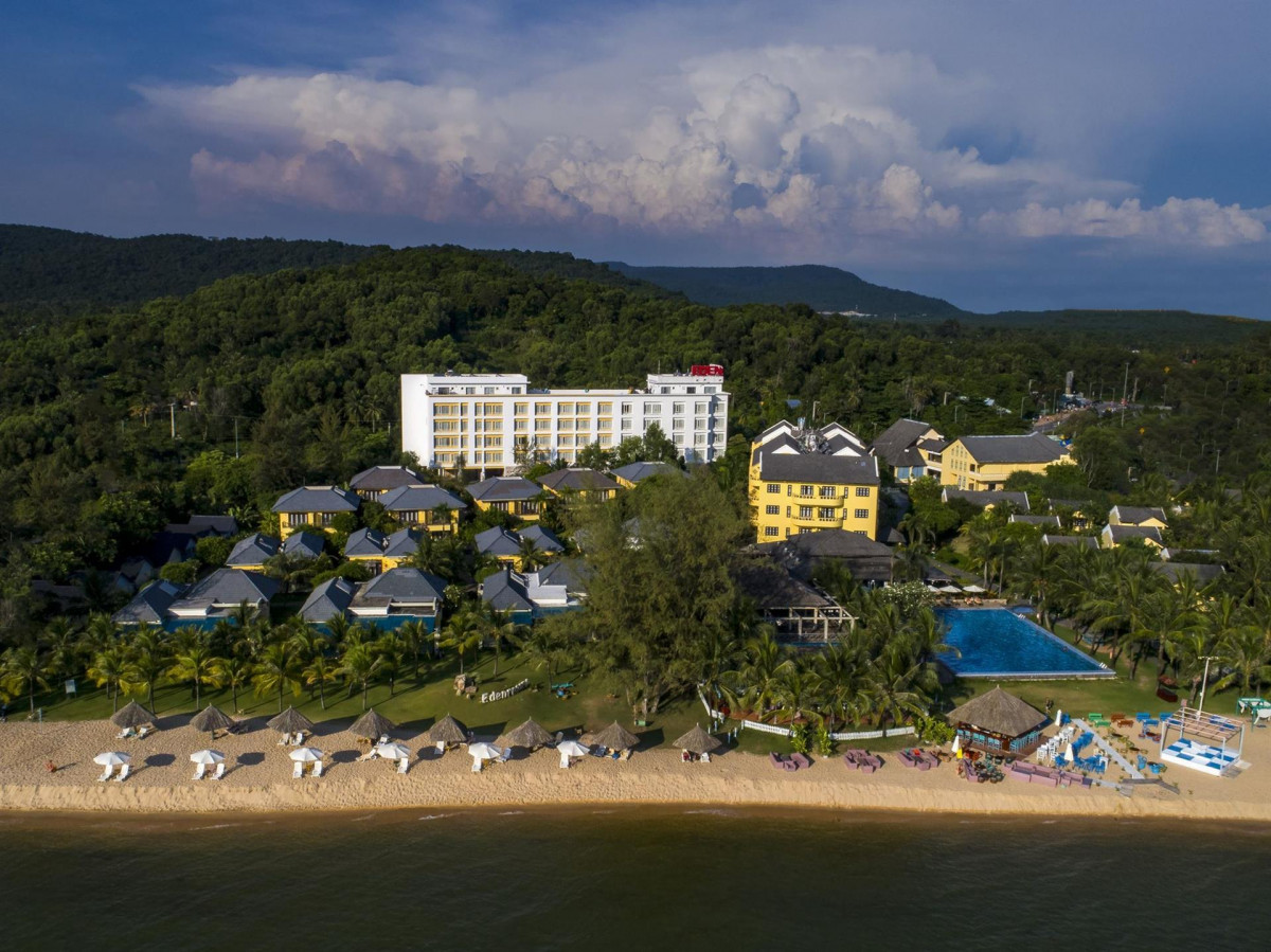 В западной части острова Фукуок, на берегу моря, в 5 км от аэропорта (10 мин езды) и в 5,5 км от центра города Дуонг Донг.