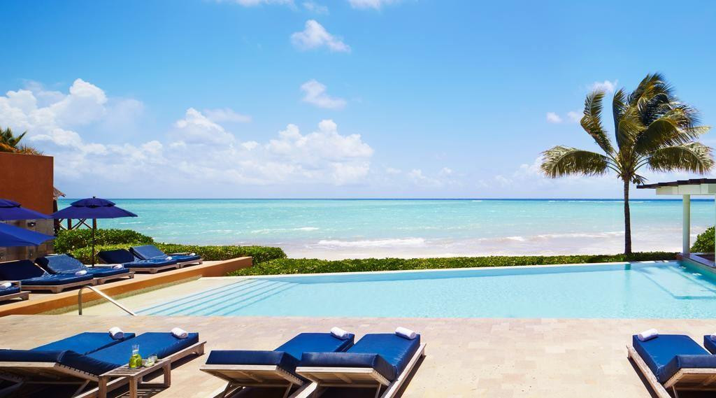 На пляже в курортной зоне Ривьера-Майя, в 40 минутах езды от международного аэропорта г. Канкун.