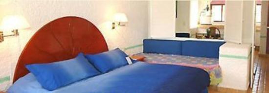 Отель находиться в центре всей движухи)) Номер брали Studio King. Без питания, т.к читали, что завтраки не стоят того и лучше заселиться в Studio King с мини-кухней и холодильником. В номерах стандарт холодильников НЕТ! Рядом куча кафешек, но не надейтесь там оставить менее 1500 руб. Если хотите сэкономить, то рядом супермаркет Чедрауи, где можно поесть, либо в фуд-корте, либо купить все необходимое и приготовить самому. Заселяют в отель в 15:00, но если есть свободные номера заселят и раньше (нас заселили на 2 часа раньше), но были и туристы которых заселили только в 19 часов и без выяснений отношений у них не обошлось. Номер просторный, состоит из 2х комнат. wi-fi в комнатах нет, только в лобби и у бассейна , но и то такого качества, что например отправить видео очень проблематично, точнее не реально. В нашей комнате №1511 wi-fi можно было поймать если поставить телефон на окошко у раковины на кухне. На телевизоре русских каналов нет. Кровать огроменная! Сам отель и номер выполнен в мексиканском обыденном стиле, ничего особенного там нет. Кондиционер старый и очень шумный, но нам им пользоваться не приходилось. На потолке есть вентилятор, его хватало. Если на улице ветер, то будут слышны завывания ветра проходящие через щели, т.к Мексика это не холодная Россия и ни кто о герметичности окон не заботится)). Русского языка в отеле не знают, только некоторые слова. В нашем номере убирали каждый день, вне зависимости от того вешали ли ли мы на дверь эту бумажку или нет, но полотенца меняют не каждый день. Примерно раз в 3-4 дня. Общались с женщиной, которая жила в стандарте, она наоборот жаловалась, что у неё убирают через раз. Из-под крана воду пить нельзя, поэтому возьмите за 50 песо (150 руб) бутыль воды (кулер) 19 литров на ресепшене. С водой в кулере периодически происходят странности - она исчезает. Заметили, что это происходит после уборки номера. Не знаю, что уборщица делает с этой водой))) Возможно просто сливают по чуть-чуть чтобы купили быстрей вторую бутыль)) Переходник для розетки брали с собой, многим не хватило отельного переходника, поэтому лучше позаботиться об этом заранее или можно приобрести в супермаркете OXXO, например. Территория отеля зеленая, очень много игуан они очень забавные) греются на солнышке каждый день. Много разнообразных птиц, гекконов. Ну и, конечно же, крокодилы, которые живут в лагуне, рядом с которой находиться отель. Каждый день все русские выжидали появления крокодила. Персонал вежливый, улыбчивый. На ресепшене можно взять дополнительно утюг, фен. На фото к описанию отеля изображена детская площадка - её там нет. Теннисный корт - его там мы тоже не увидели, ну и того самого мини тренажерного зала тоже))) Что касается моря. Поход до моря составляет 7-10 минут. Мы ходили на пляж через клуб Коко Бонго и потом налево до волнореза . Мы ездили и ходили на разные пляжи Канкуна этот нам понравился больше всего. Чистый и у волнореза не большие волны. Вообщем итог всего отель стоит своих денег (за путевку заплатили почти 120 тыс). Отель для непривередливых. Отсутствие завтрака абсолютно не мешало нам жить - мы не голодали).