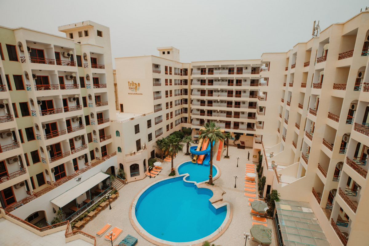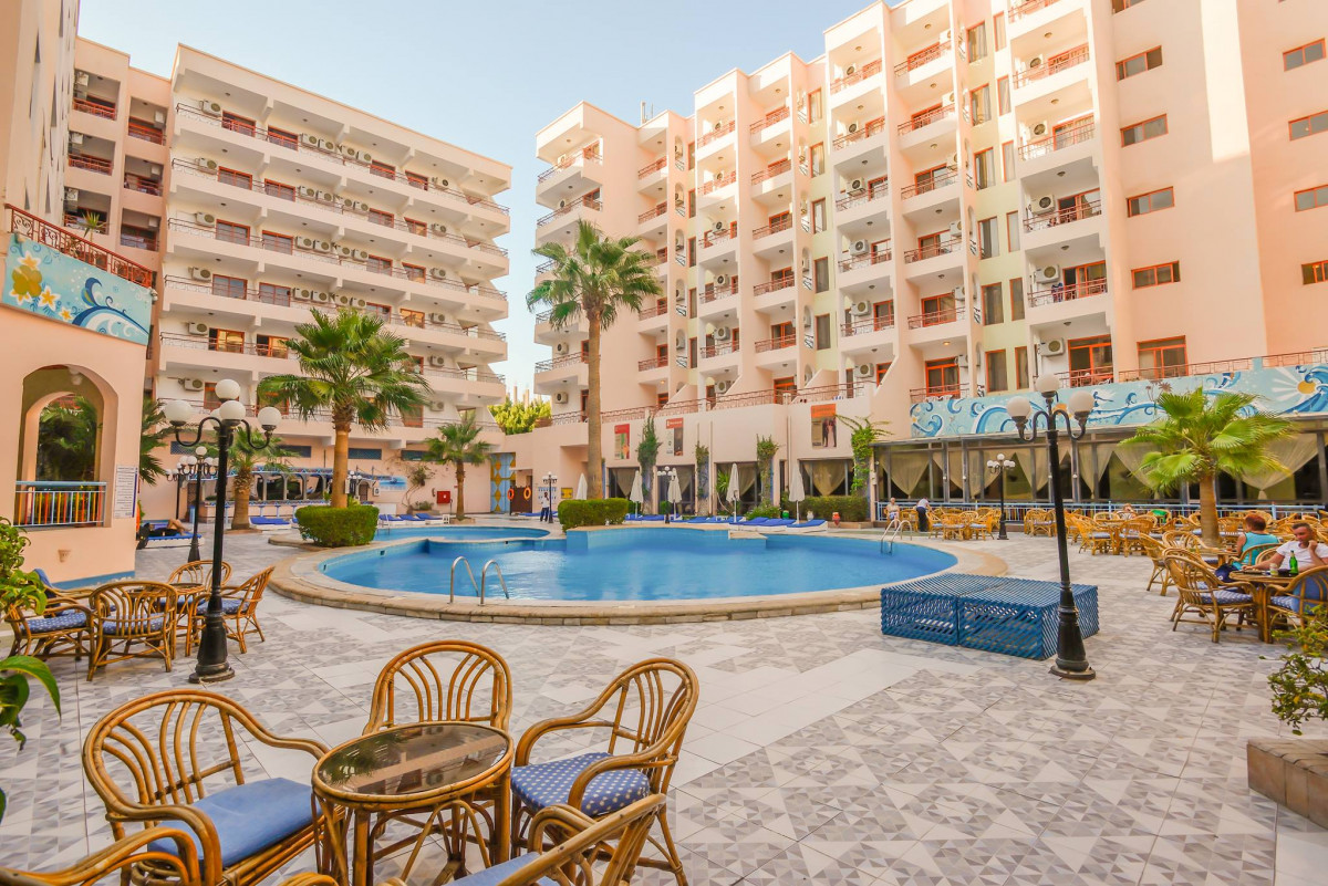 Отдыхали семьей 3 человека. Отель старый , первый раз в такой попали. Сначала заселили в крохотный номер. После поломки дверного замка переселили в двухкомнатный. А так просят 20 долларов на ресепшене. В итоге кондиционер вырубался , унитаз сломался и тек. Фена не было ( хорошо брала свой ), вай фай только на ресепшене .Сейф есть на ключе. Грязно в номере , хоть и убираются. Простыни грязные , просила менять. Но на удивление делали лебедей из полотенец. Еда отличная для 3 звезд , мы гододными не были. Пиво бутылки , вино платно. Газировка из бутылок и кофе из кофе машины было. В аквапарке при нашем отеле никто не купался , все ходили в 4 звезды. Море отличное , заход хороший , песок и глубина отличная. Рыбки и дельфины даже приплывали .С масками плавали и получали удовольствие. Наш отдых спасла 4 ка , дойти до неё минут 5-7. Бар там есть. Пиво бесплатно и напитки тоже. Анимация тухлая на пляже. Вечером представления каждый день. Дискотеки нет в отеле. Отдых прошёл на ура. Мы в номере только спали и переодевались. Поэтому особо не заморачивались. Да и нам повезло , что переселили. Ходили по Хургаде , вечерами. Сюда конечно не вернемся.