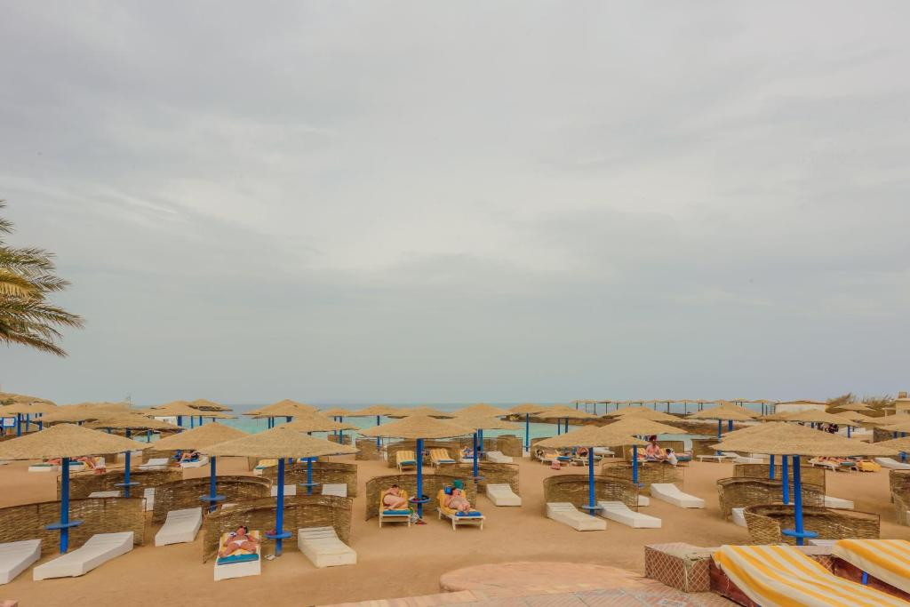 Отдыхали с мужем с 3-12 сентября 2025. Из Санкт-Петербурга за 9 ночей отдали 115000 рублей. Летели египетскими авиалиниями Алмас... За 6 часов дали булку с сыром, сок воду. Потом чай, кофе. Самолёт убитый, тесный, жара жуткая (в обратную сторону температура была комфортной). Я потеряла сознание, в салоне не оказалось даже нашатырного спирта, муж сказал, что аптечка была вообще пустая. В аэропорту представители турфирм зазывают к своим стойкам, чтобы оформить визу за 27 долларов, не ведитесь, рядом окошки, где без очереди оформите за 25. Наш отель был третий, ехали минут 40. Заселили сразу, в 10-30. Отдали 10 баксов. Номер 227 на 2 этаже - это жуть. На этом этаже никто не живёт. Номер весь в пыли, полы грязные, в штукатурке. Постельное грязное, в волосах. Поймала уборщика, заставила поменять бельё, принести полотенца, гель, шампунь и воду, помыть пол. Вернулись - грязь. Поймала опять, мыл при мне. Не спасло положение, он не понимает, как нужно мыть пол. Выгнала его, и запретила заходить в номер. Тряпки для уборки привезла с собой (спасибо отзывам), отмыла мебель, зеркала и пол. Окна не мыла, они жуткие, а занавески ещё хуже. Всю ночь по улице гоняют машины, слышимостт идеальная, но мы спим крепко. Кондей морозит сильно, не регулируется. Приходилось ночью выключать, а потом опять включать. Холодильник морозит. До пляжа идти 8 минут. Из них 5 минут по городу, 3 минуты по территории отеля, который на 1 линии. Молодежь дойдёт и за 4-5 минут. На пляже бар с напитками, душ, туалет, аквапарк, бассейн, будка с полотенцами. В море песок, тапки не нужны, я в носках ходила, т.к. песок горячий. Море очень тёплое. Воздух 36' в начале сентября. В феврале отдыхать комфортнее. В столовой удивительно грязно!!! На грязные столы стелят грязные сервировочные салфетки, только на ужин чистые скатерти. Официанты работают быстро. Питание нормально, но готовить не умеют вообще. Говядина вкусная, но всегда жёсткая. Курица всегда пересушена. Рыбу есть невозможно, сухая и одни хвосты. Из овощей помидоры и огурцы. Всё. Зелени нет. Фрукты финики, дыня, апельсины, иногда виноград, гуава. Выпечка сухие бисквиты. Гарниры приготовлены не вкусно. Алкоголь ужасный - всё на один вкус, только подкрашен по разному. Пиво хорошее. Соки манго и апельсин порошковые, но вкусные. Аниматоров не видно. Вечером всегда какое-то шоу. Вывод: можно поехать, если дёшево, администратору денег не давайте, бесполезно. В этой ценовой категории и даже на 30 тысяч дороже более приличного отеля не найдёте, я долго изучала отзывы. Так что лучше уж сюда. Как написал в отзыве один турист - "Отель лучший из худших".