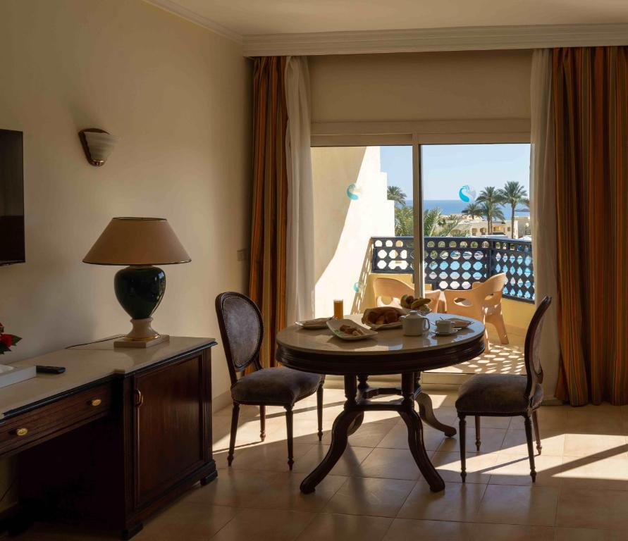 Отдыхала в июне 2025 г. Отель расположен близко к аэропорту, в мин.10 пешком есть прогулочная площадь Сохо, также из отеля до Сохо ходит трансфер. Отель очень понравился, номер был с видом на бассейн и море, территория ухоженная, большая и красивая. Пляж чистый, лежаков достаточно, море чистейшее, много рыбок и очень красивый риф, короткий понтон для входа в воду. Для деток есть вход с песка. Полотенца можно брать как у бассейна, так и на пляже. Еда отличная, много фруктов (арбуз, дыня, апельсины, бананы, яблоки, финики, сливы, персики), раз в неделю рыбный ужин (крабы, креветки, суши), ежедневно большой выбор курицы, говядины, рыбы, овощей и всяких вкусностей, а также восточные сладости. Персонал внимательный и дружелюбный. Анимация не навязчивая, хорошие ребята, развлекают всеми силами. На пляже проводят зарядку, зумбу, танец живота. У бассейна аквааэробика, йога. С удовольствием вернусь в данный отель.