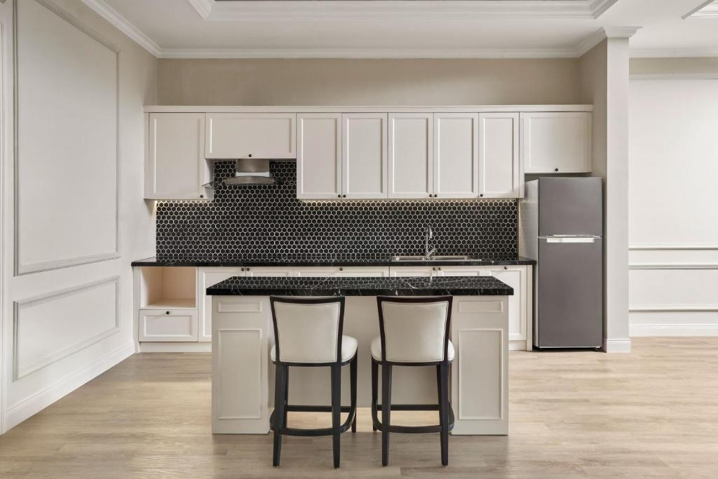 Состоит из главного 8-этажного здания (есть 6 лифтов) и 78 вилл. В отеле есть оборудованный номер и лифт для гостей с ограниченными физическими возможностями. Предоставляется инвалидное кресло (платно). Взимается депозит (обязательно), курение разрешено в специально отведенном месте, заезд — 15:00, выезд — 12:00.