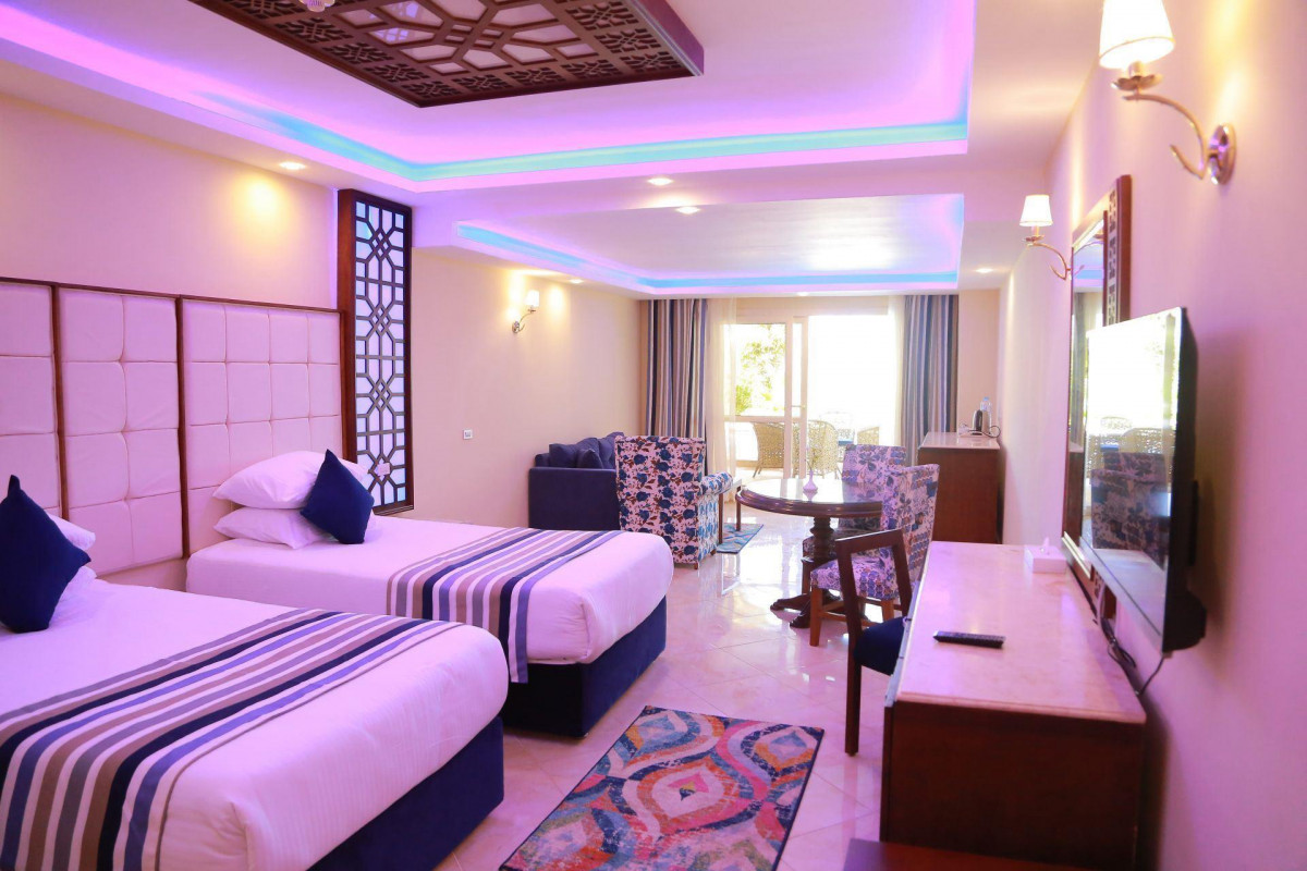 Были в отеле вот только с 27 июля по 5 августа 25 года Рекомендую всем отель отличный 1й респект за то, что прилетели в 7 утра нам сразу же одели браслеты и отправили завтракать, заселили нас после 12.00 хотя официальное заселение после 14.00, 2й респект как оказалось при выезде браслеты не снимают, а так как нам приходилось ждать выезда после 19.00 (мы и пообедали перед дорогой и поужинали, уже молчу про алкоголь никто не ограничивал, 3й респект за алкоголь наливают в 200 гр стаканы, а в ресторанах, стаканы по 0.33 (что для Египта редкость в основном 100гр стаканы) посуда в основном стекло, ее разрешают брать в номер в низу у каждого корпуса стоит ящик для грязной посуды из номеров 4й респект очень доброжелательный персонал ни кто не клянчил доллар за уборку обслуживание и др. Очень интересные вечерние программы после детской дискотеки Бары все кроме 1 (у второго бассейна) до 11 вечера, это тоже очень приятно Еще большой плюс бармену у 2го бассейна, когда у него нет народу он брал поднос обходил всех и спрашивал кому что принести (без платно) носит и ставит стаканы куда скажите хоть прямо в бассейн Аквапарк большой 28 взрослых горок ленивая река и где то 8 горок для маленьких по поводу пляжа пирс очень длинный около 1км и 3 схода, два ближних там песчаный сход и под пирсом много рыбок, а в дальний третий спуск красивая лагуна (только идти далеко). Минусов очень мало 1. это корпуса 3х этажные без лифтов (особо не набегаешься) 2й минус это далеко от города он же и плюс т.к всех из города забирают за 5 часов до вылета, а мы находились в 10 минутах от аэропорта нас забрали за 3 часа еще из минусов это в аквапарке алкоголь в баре платный, и то что волну включают на 20 минут раз в час наверное еще из минусов однообразная еда в ресторанах (зато возле рестрана протянулся гриль бар он работает с 10 утра до 9 вечера там разнообразной едой порадовали, кормили шаурмой, шашлыками из крицы и говядины, каждый день разное меню, а по понедельникам дают королевкие криветки на гриле. Воооооообщем огромный респект и спасибо за отдых