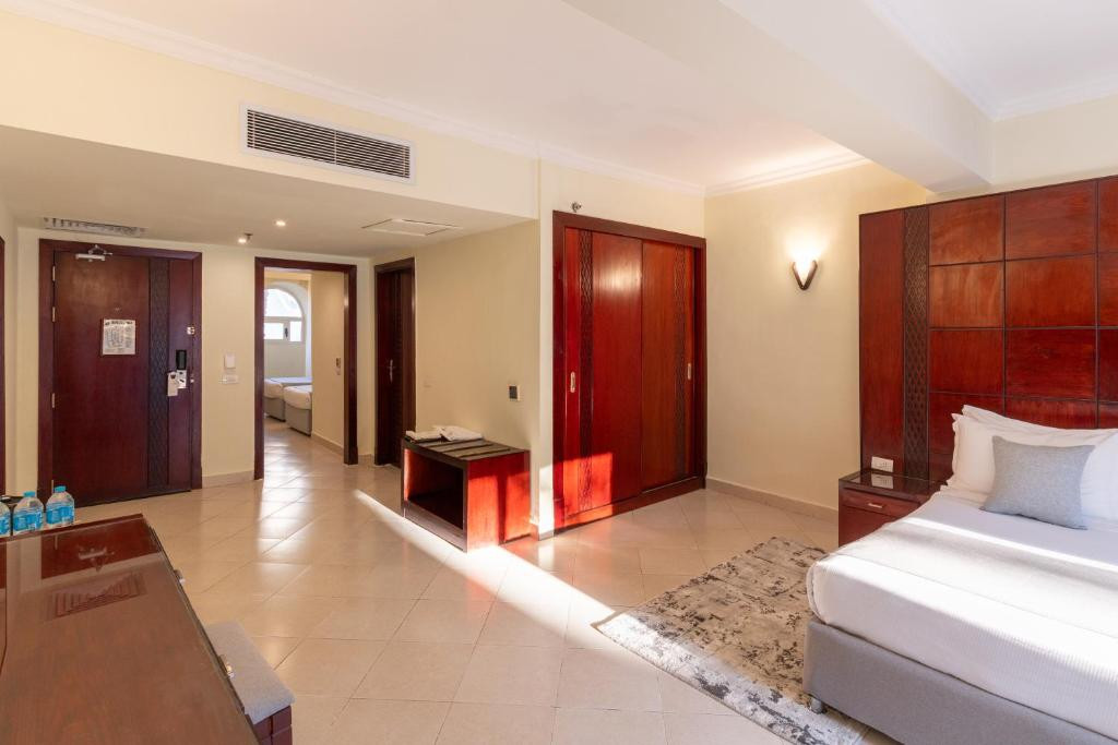 Отдыхаем тут с дочкой 9 лет. Аквапарк супер- сама чуть в небо не улетела бассейн большой. Море- можно купаться от пляжа- песочек, шезлонгов много и пустые почти все. Если хочется поглубже- первый заход с пирса близко, рыбы есть но мало. Риф- в конце пирса- восторг! Очень много персонала, видно что следят за чистотой. Еда- разнообразная и вкусная! Каждый день что то готовят на огне. Индейка, стейки, курица кунг пао и тд. Сегодня были роллы. Интернет ловит почти везде и хороший. Анимация каждый вечер зачетная. Скучать просто не успеваем. Заселили почти сразу, шоколадка Аленка сделала свое дело. Номер с балконом и видом на море. Кажется Blue Suite. Не работала розетка и не было полотенец, но несколько звонков на ресепшен и жизнь наладилась. Уборка каждый день и в принципе арабы очень миловидные тут. За территорию еще даже не успели сходить. У бассейна шезлонги разбирают быстро, но мне бассейн не сильно интересен.