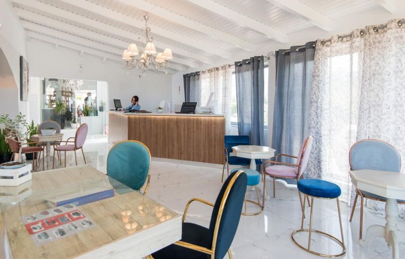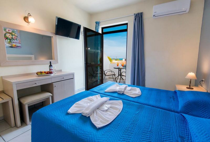 Мы брали машину напрокат, поэтому нас расположение отеля устраивало. Нам не повезло, дали номер 221 рядом с бассейном и баром. В итоге до 12 ночи стоял шум. А сам номер абсолютно нормальный, небольшой и чистый. Еда: На завтраки всегда были помидоры, сыр, колбаса, йогурт, выпечка, мюсли, сосиски, омлет, апельсины. Обеды и ужины были более разнообразны: рыба, хорошо приготовленное мясо, салаты (2-3 вида), несколько вариантов гарниров: картофель, рис, овощи. Из фруктов: арбузы, дыни, апельсины. Сладости: выпечка, муссы и т.д. Напитки были не очень вкусные: пиво и вино разбавленное. предпочитали покупать вино самим в магазинчиках. Пляж находится рядом через дорого. Идти быстро и не напряжно. Есть бесплатные шезлонги и зонтики от отеля, но их было мало. Дно каменистое. Заходить не очень удобно. Мы немного проходили подальше вдоль побережья и там уже было песчаное дно.