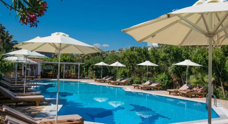 В 7 км от аэропорта г. Ираклион, в 4 км от г. Ираклион, на берегу моря. Автобусная остановка рядом с отелем.