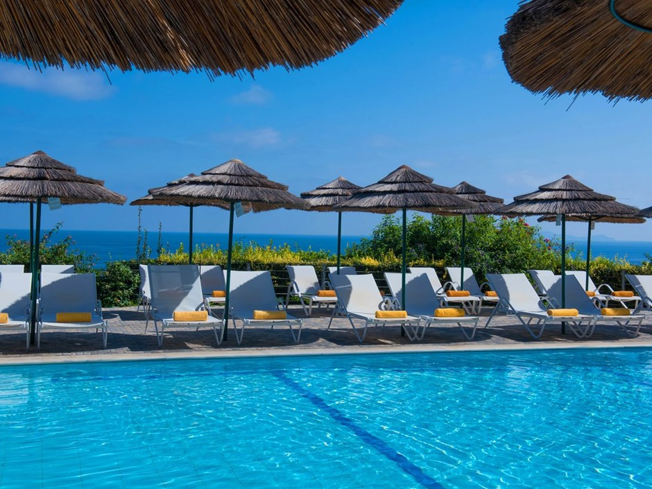 Отельный комплекс расположен каскадом на возвышении и состоит из 5-этажного центрального здания (с 3 лифтами, но не через все этажи) и 4 отдельных зданий Annex, расположенных в 50-250 м от главного здания и в 250 м от пляжа Мононафтис, отделенных от главного здания проезжей дорогой. Всего 209 номеров.