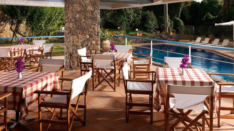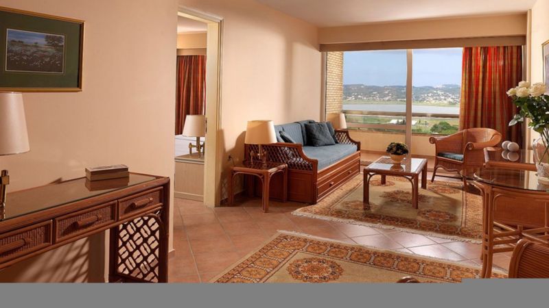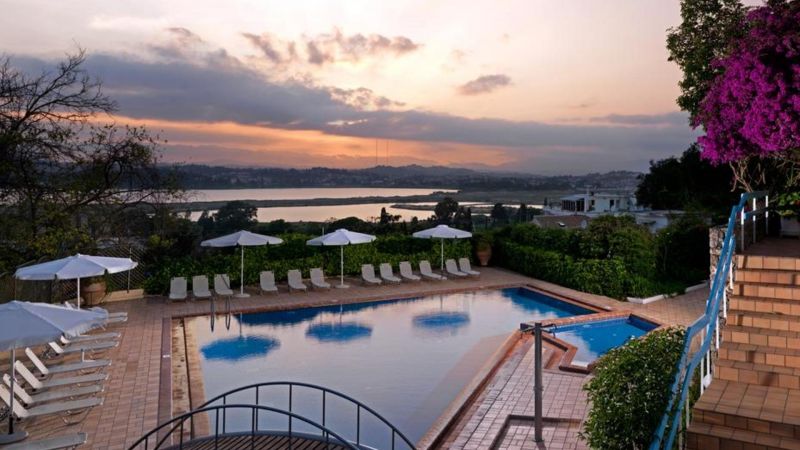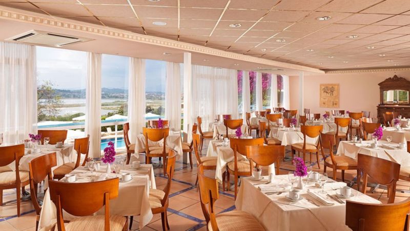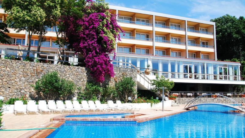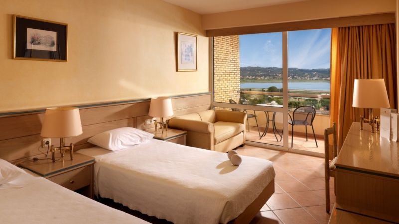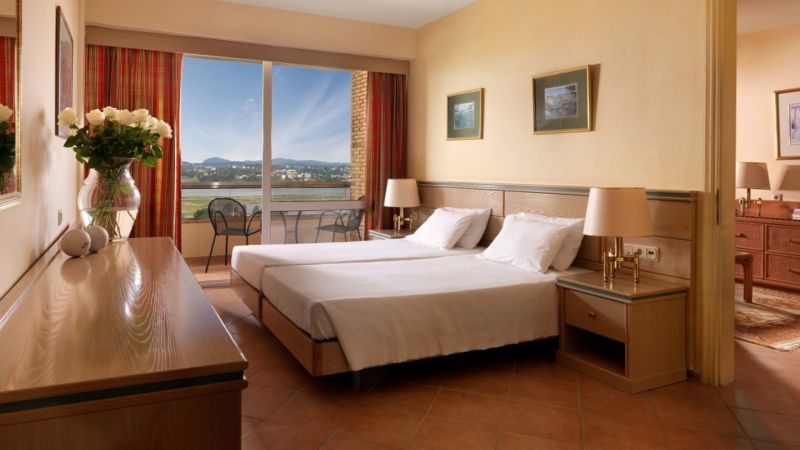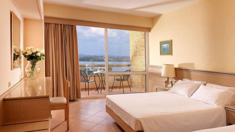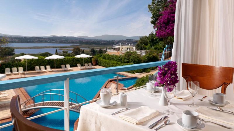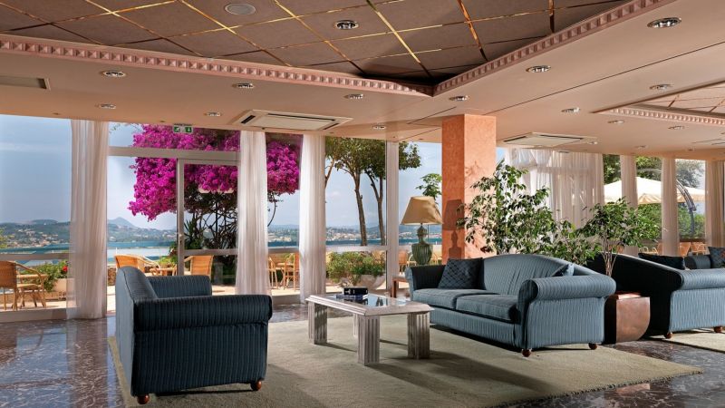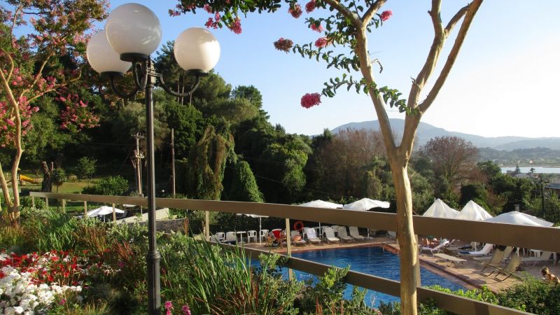 В курортном районе Канони, в 3 км от центра города Корфу и аэропорта.
