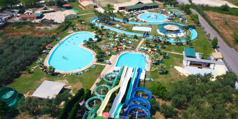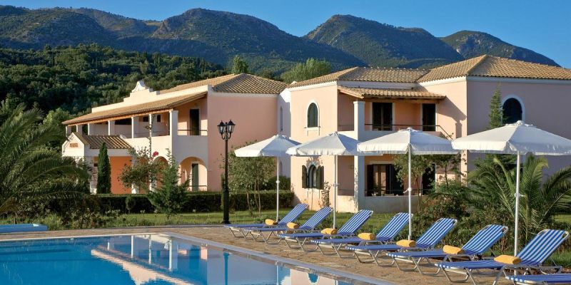 Северная часть острова, в 500 м от центра пос. Ахарави, в 37 км от г. Корфу и аэропорта. Состоит из 12-ти зданий.