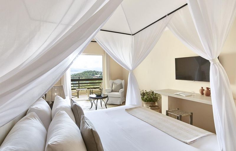 В 12 км от аэропорта, в 11 км от города Керкира, в 2 км от местечка Дассия, на склоне холма, с видом на залив Дассия и Ионическое море. Автобусная остановка в 400 м от отеля. Общая территория 110 000 м2.
