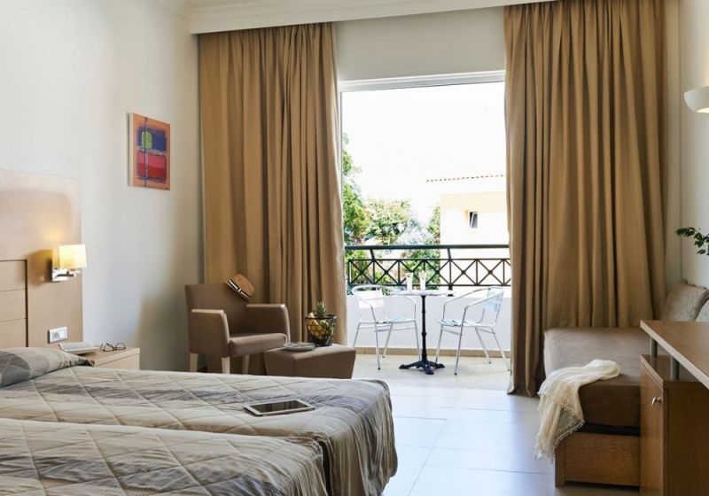 Услуги: В отеле работает русскоговорящий персонал. Основной ресторан Alkinoos, ресторан у бассейна, ресторан Lagoon, азиатский уголок (открыт 3 раза в неделю в июне-сентябре), основной бар Axiothea, бар, бар у бассейна, бар Lagoon (работает с июня по сентябрь), бар на пляже (работает с июля по август), обмен валют, аренда автомобилей, мини-маркет, ювелирный магазин, интернет-уголок (платно), Wi Fi (платно), ТВ-уголок, игровая комната (платно), прачечная (платно), парковка.