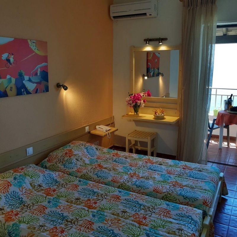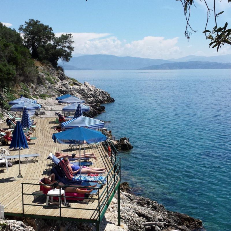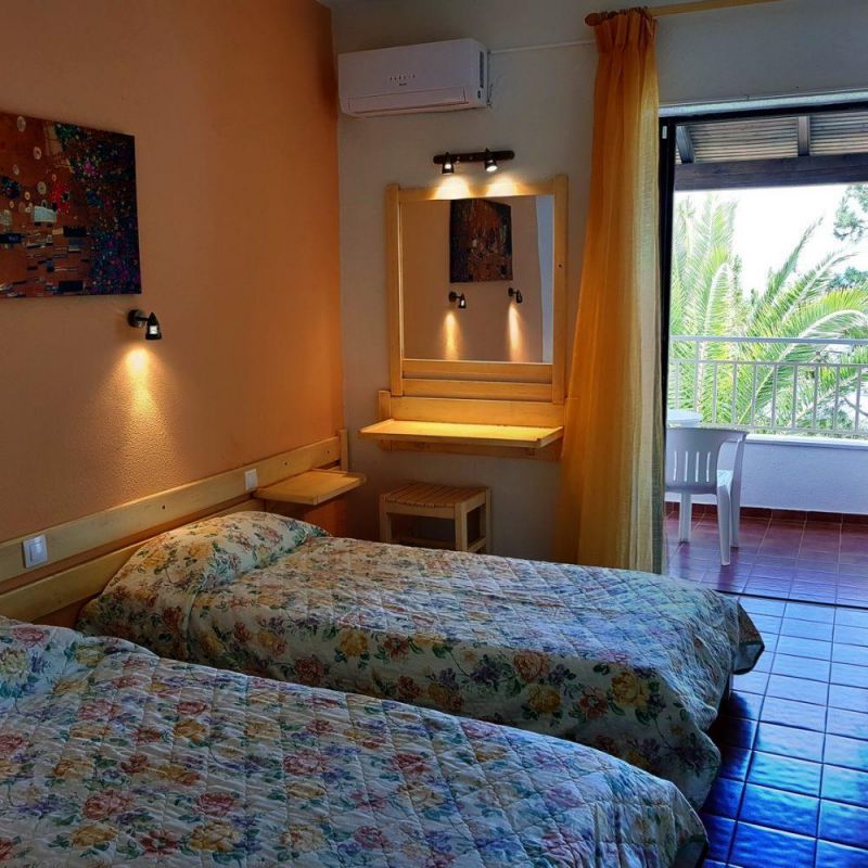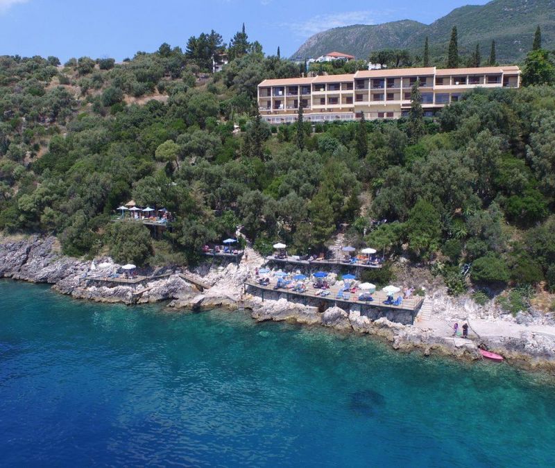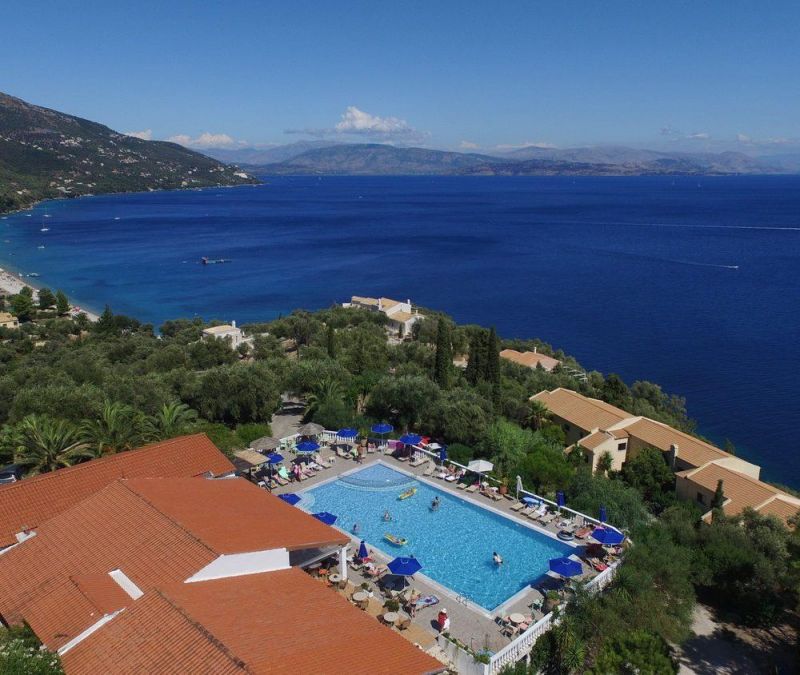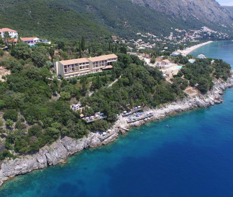 На северном побережье острова Корфу, в 15 км от аэропорта острова Корфу, в 15 км от центра г. Керкира, в поселке Барбати, в 600 м от пляжа.