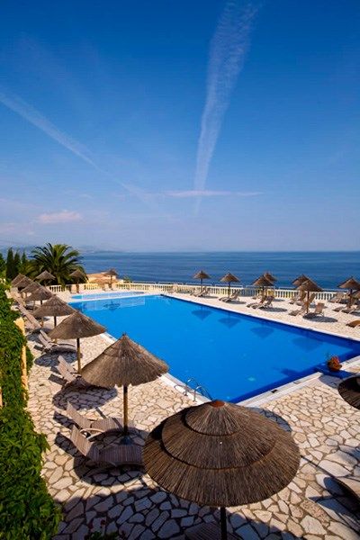 В 18 км от аэропорта, в 20 км от г. Корфу, в местечке Барбати, в 300 м от моря, на возвышении.