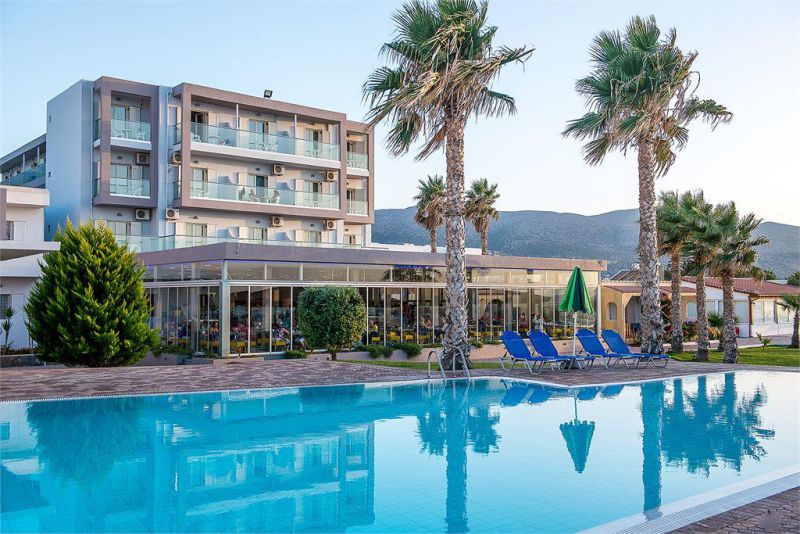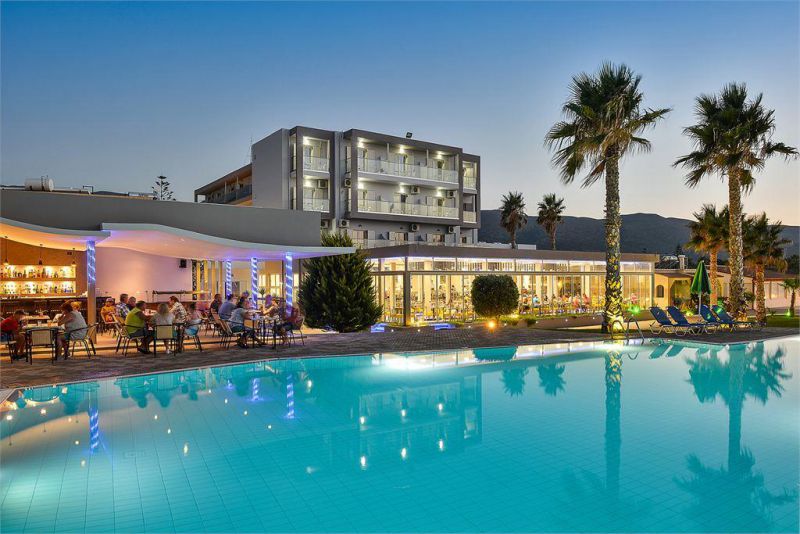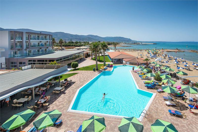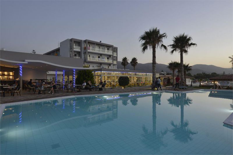В 34 км от аэропорта г. Ираклион, в 2 км от центра поселка Малия, в 14 км от г. Херсониссос, первая береговая линия.