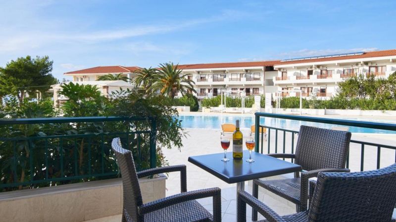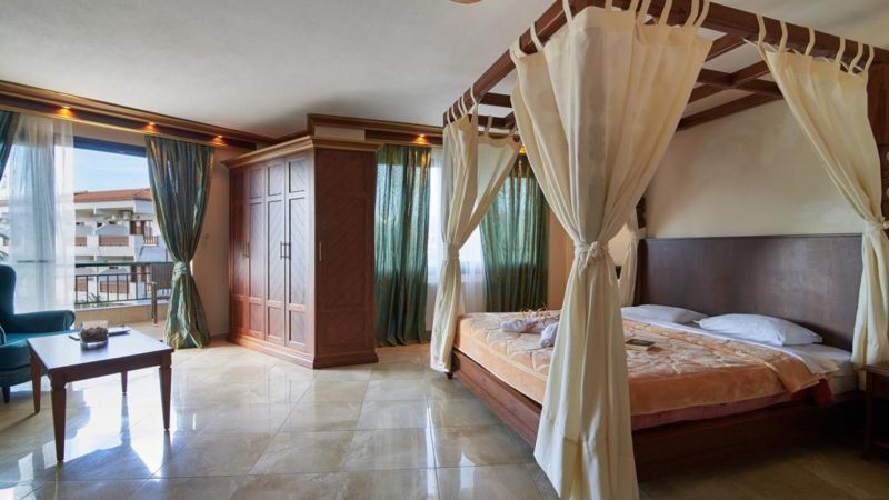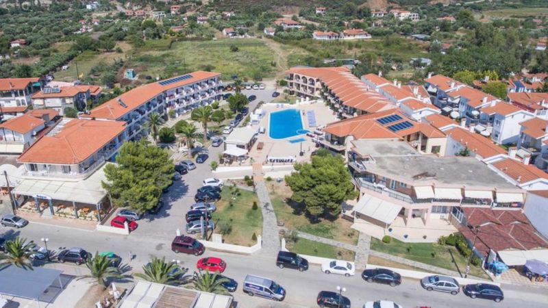 Отель расположен в поселке Торони, на полуострове Ситония,в 130 км от международного аэропорта Македония г. Салоники.