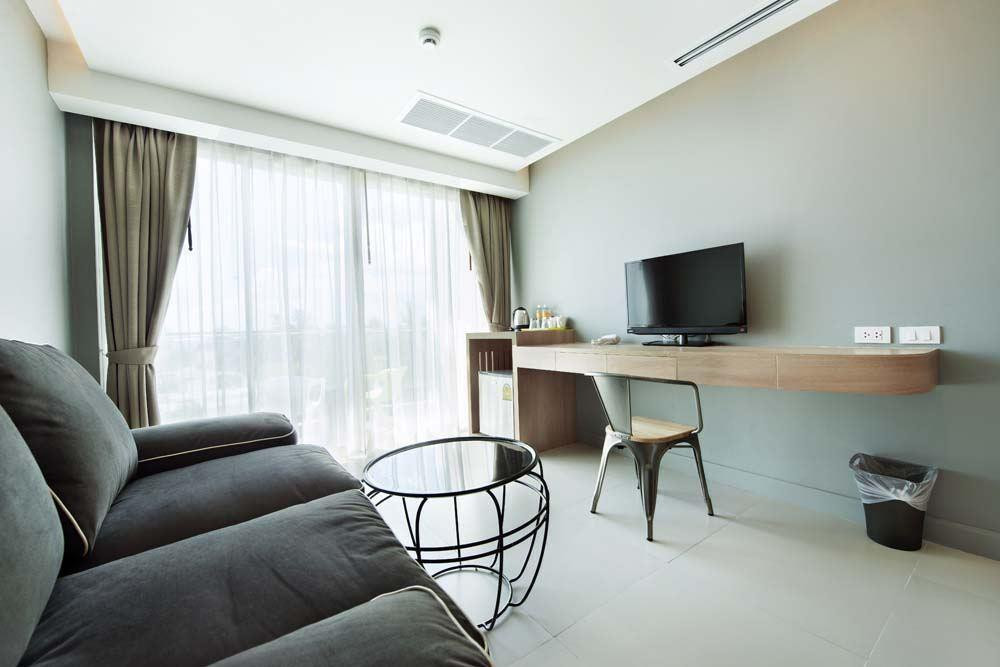 Отдыхали в этом отеле с 08 по 20 мая 2016г. с дочкой (13 лет). Тур бронировали за 3 месяца. В Таиланде впервые, до этого были Европа, Тунис, Турция, Египет. Привезли нас из аэропорта примерно в 12.30, заселение в 14.00. Сидеть в холле желания не было, т.к. вместо кондиционера (его просто нет в отеле 4*!) крутился вентилятор. Мы переоделись в туалетной комнате и пошли по окрестностям. Гулять, правда, тоже сил не было после 8,5 часов полёта и 2 часов езды до отеля (с пересадкой из большого автобуса в маленький на середине дороги по жаре). Мы обменяли доллары на баты в обменнике (они на каждом шагу, но курс разный, нужно смотреть) и вернулись на ресепшен. Пары, которая приехала с нами, уже не было (видимо, заплатили за раннее заселение, хотя даже намёка на это со стороны персонала не было). Нам выдали талончики на питание (завтраки) с указанием номера комнаты, взяли депозит (просили 1000 бат, но можно и в долларах, возвращают в день выезда после сдачи ключа без проблем). Я пошла посмотреть наш 204 номер (его ещё убирали). Увиденное меня повергло в шок: площадь явно меньше заявленной, дневного света нет вообще (круглые сутки темно), т.к. балкон выходит на стену этого же отеля с промежутком примерно 70 см. А ещё через окно, находящееся в коридоре, можно запросто попасть на наш балкон! Я, не долго думая, вернулась на ресепшен и стала отказываться от предложенного номера. У девушки-тайки улыбка сразу пропала, на ломаном английском она ответила, что других номеров нет и в ближайшие дни не будет. Мы в два голоса начали допытываться, когда сможем получить нормальный номер. Я даже стала возвращать карту-ключ, пытаясь тем самым показать, что заселяться не намерена. Девушка уткнулась в компьютер и через минуту сообщила, что завтра освободится другой номер, если мы подойдём к 14.00, нам его поменяют!!! Мы согласились и отправились в свой 204-ый. На балконе уборки не было никогда, пыль в палец на полу и на стульях, запах табака не выветривается, хотя балкон вроде как на улице (в номерах курить запрещено), душ на тёплую воду настроить не удалось (либо холодная, либо горячая). В номере такая влажность, что мы сутки потом обливались в полном смысле этого слова. На следующий день мы подошли на ресепшен часов в 12, там уже была другая девушка. Мы спросили про обещание, она мило улыбнулась и на бумажке написала нам номер комнаты, которая освободится в 14.00. Я сориентировалась по её месторасположению и согласилась. Мы с дочкой отправились посмотреть новое жилище, но уборщиков не было даже в коридоре. Т.е. номер был уже готов, но ключ нам вручили в 14.00. Схватив чемоданы, мы бегом рванули в номер 313, и, о чудо, он оказался таким, как заявлено в описании: большой, светлый , с диванчиком (причём, категория у обоих номеров одинаковая!). Сантехника работала исправно, кондиционер – тоже. Шторы и тюль, правда, не стирали с момента открытия В раковине есть пробка, можно постирать мелкие вещи. Вода в бутылках, чай, кофе, сахар – ежедневно, шампунь, гель для душа (они очень сушат волосы и кожу), туалетная бумага – по мере окончания. Сейф бесплатный, мы пользовались, но , если что-то забывали убрать (планшет, телефон), ничего не пропадало. Полотенца меняют ежедневно, постель – раз в 3-4 дня. Чаевые мы не оставляли, но пару раз уборщице маленькие презентики в руки давали (вкусности), она не отказывалась, уборка была на 5 . Телевизор работал 10 дн