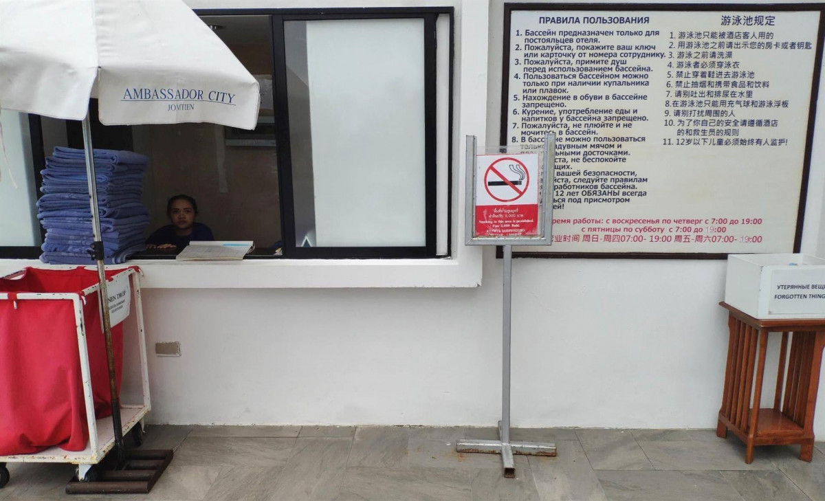 Отдыхали в сентябре 2023 года. Брали путевку заранее в июне в Inn Wing, но когда прилетели оказалось, что этот корпус закрыт, а работает только Ocean Wing. На месте представитель туроператора решили эту «проблему» заселив нас в Ocean Wing без доплаты, но без завтраков. Мы согласились. В самом амбассадоре гостей принимал только этот корпус. Остальные не работали. Территория такая же ухоженная как раньше до пандемии. Бассейны чистейшие, но пускали только в тот, что в корпусе Ocean. Пляж тоже чистый, в течение дня ходил сотрудник и собирал мусор, который приплывал с моря. Персонал приветливый, доброжелательный. Уборка и смена полотенец каждый день. Все гости ходили завтракать в кафе “Паста паста», завтраки по меню. Шведского стола не было. Рынок на территории работал каждый день, но по одной палатке только. Магазин 7/11 работал каждый день часов до шести. Сам номер старенький конечно, в традиционном стиле, но очень чистый. Кушать ходили в кафе через дорогу, массаж тоже там, все на месте.