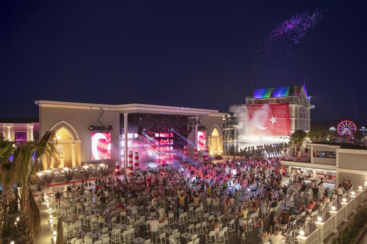 Отель красивый, персонал доброжелательный, еды много и на любой вкус. Территория большая, много активных мероприятий как в бассейнах, так и на спортивных площадках.. Пляжная зона отдельно, поэтому в купальниках и плавках в ресторанах людей не пускают, что радует! Нет ограничений по детскому времени и семьи с маленькими детьми гуляют круглосуточно. Посмотреть спокойно кино, сходить на караоке или посидеть тихо в ресторане нет возможности. Гул, крики, детские визги повсюду днем и ночью и ранним утром. Основные отдыхающие в основном жители Турции, соответственно преобладает местный менталитет. Сложилось впечатление, что местные жители не очень уважают русскоязычный народ ( при выходе не выпускают, на пролом заходят, их дети сбивают с ног, не извиняясь дальше готовы по тебе ехать, родители идут улыбаются, такое ощущение, что если ты приехал во все включено , то и за детьми должны смотреть все вокруг, кроме родителей). Минус две звезды за то что администрация отеля не ставит ограничения по взрослому и детскому времени , хотя бы в некоторых случаях таких как кино , караоке, дискотека..