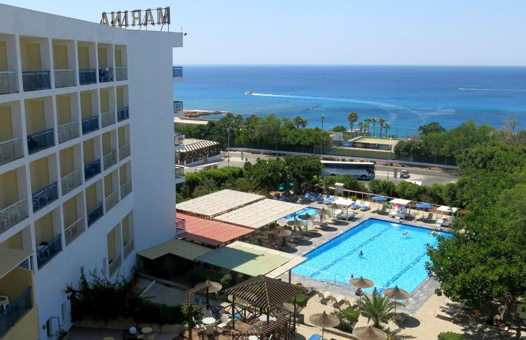 Заехали в июне 2018, номер на третьем этаже. Обычный номер с балконом с видом на приотельный бассейн и с боковым видом на море. Все есть для комфортного проживания. Заметно, что отель не новый, но в целом выглядит очень даже неплохо. Расположение: до моря 7 минут ходьбы вниз, обратно соответственно вверх - подойдет не каждому. Прям напротив выхода из отеля находится парк скульптур и кактусов. А вот до центра Айя-Напы придется либо 25 минут идти пешком, либо ехать на автобусе (остановка прям около отеля). Так как отель находится в отдалении от центра города, вечером и ночью тихо. Питание: у нас были только завтраки. Шведский стол. Каждый день одинаковый, но вкусный. Есть кафешка около отеля, хорошая и недорогая. Следующая кафешка находится в 10 минутах. Сервис: уборка происходила регулярно, очень отзывчивый персонал, никаких нареканий. В ванной комнате встречались мелкие муравьи (за день 2-3), меня особо не напрягало. Хотя, возможно, на первом и втором этаже их побольше. Общее впечатление хорошее, соответствует своим звездам.