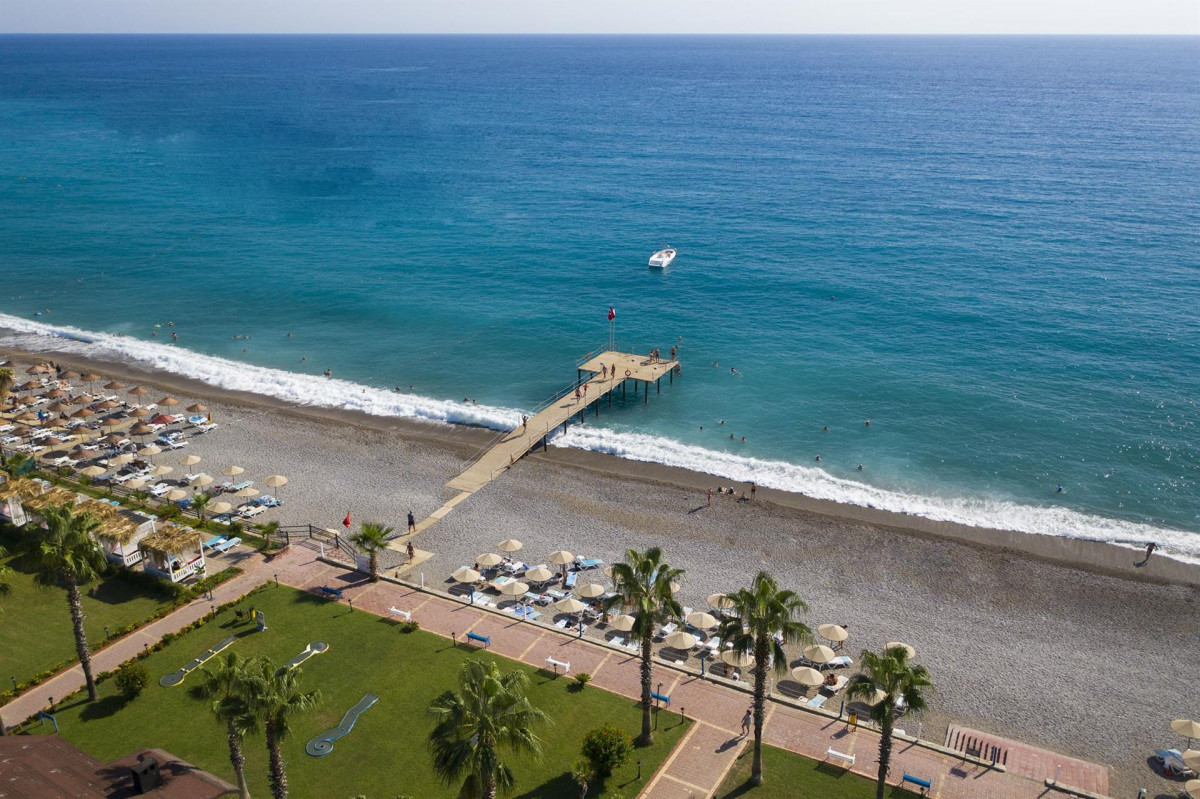 Пишу честный и правдивый отзыв об отеле. Очень жалею , что не прислушалась к отзывам других туристов и купили тур в этот отель. 1) Анимация никакая, развлечений в течение дня практически нет, а если и есть аквааэробика, то аниматору хотелось купить ред булл , чтоб был активнее и заинтересованнее в своей программе.Вечером скучно очень, музыки и развлечения нет.В соседнем отеле играет музыка, дискотека, там было весело 100%. 2) в лифте, в холле нет кондиционеров - жара и духота невыносимая, пока спускались на завтрак/обед/ужин потели ужасно .Лифт ждали каждый раз очень долго . 3)Еда.Голодными не останетесь , но очередь за грилем очень долгая, один раз простояли 30 минут за шашлычками и были разочарованы.Все очень однотипное, дети каждый день ели макароны с фаршем, а-ля болоньезе, рыба, мясо было, но тоже на 3,5 балла из 5 ,из фруктов постоянно арбуз, дыня, апельсины, яблоки, груши.Персики , нектарины и виноград за 12 дней были 1 раз и то на праздник. 4) Алкоголь- в лобби делали хорошие и вкусные коктейли (ребята старались), может потому что мало народу и проходимости, а вот в баре наливали хоть бы как,и то видно было что одним делали красиво, другим как бы и хоть бы так, возможно дело в чаевых, не знаю)Все в пластиковых стаканчиках, на море с собой пивасик в одноразовом стакане нести не очень, пока дойдешь , уже пора вернуться повторно. 5) Снек бар работает с 12 часов , там есть овощи/фри/бургеры, но два раза с момента открытия чувствовала запах прокисших овощей 6)Номер. Хочешь нормальный-доплати, а так дают изначально номер с видом на дорогу, как зашли в номер стоит запах плохой, отказались , дали денег и сразу нашли другой, с частичным видом на бассейн.Кондиционер работал исправно, претензий нет, но у нас 4 дня текла вода в душевой на пол, был потоп, каждый день приходил мастер, что-то делал, уборщица потом убирала воду и на след. день все повторялось.Уборка была , при чаевых горничным можно получить хорошую уборку-1-2$ они очень рады и благодарны, к клинингу вопросов нет. 7)Базары и сувениры. Слева от отеля базар в 10 минутах ходьбы, в принципе там все что нужно и купили, справа Алара базар и аутлеты, можно поехать на автобусе, они ходят каждые 10 минут, цена 1$, работает до 12 ночи.Также ездили в Аланию после ужина, цена поездки 3$, время в пути туда 1 час, как мы посчитали , зря потратили время, если цель магазины, то это тогда лучше на Алара базар и аутлет рядом с отелем, а так , ничего особенного, в Макдональдс сходили(купили комбо на наши Российские 900, у нас в Москве 350) поездка обратно заняла 1,5 часа и в битком набитом автобусе.Все сувениры можно купить и при отеле, там цены такие же, но продавцы очень лояльные и делают хорошие скидки. 8) Экскурсии. Купили на пиратскую яхту, цена 35$ за взрослого, 25$ ребенок. Не особо понравилось , потому что отплывали от берега не далеко ,было 2 остановки и в основном купание с яхты , напитки бесплатно безалкогольные, пиво 6 евро, коктейли 12 евро.Пенная вечеринка 10 минут и принципе все.Только сделали красивые фотки, яхта красивая .Брали экскурсию на джипах- 40$ взрослый, 30$ детский , это классная экскурсия, очень интересно и весело, устали, но это была приятная усталость. Говорили про стрельбу между джипами водяную, как оказалось пистолеты платные плюс 5$, а так ведро с водой и бутылки, но все равно , нам очень понравилось-рекомендую. 9) Цены. Все указаны в евро , но все 