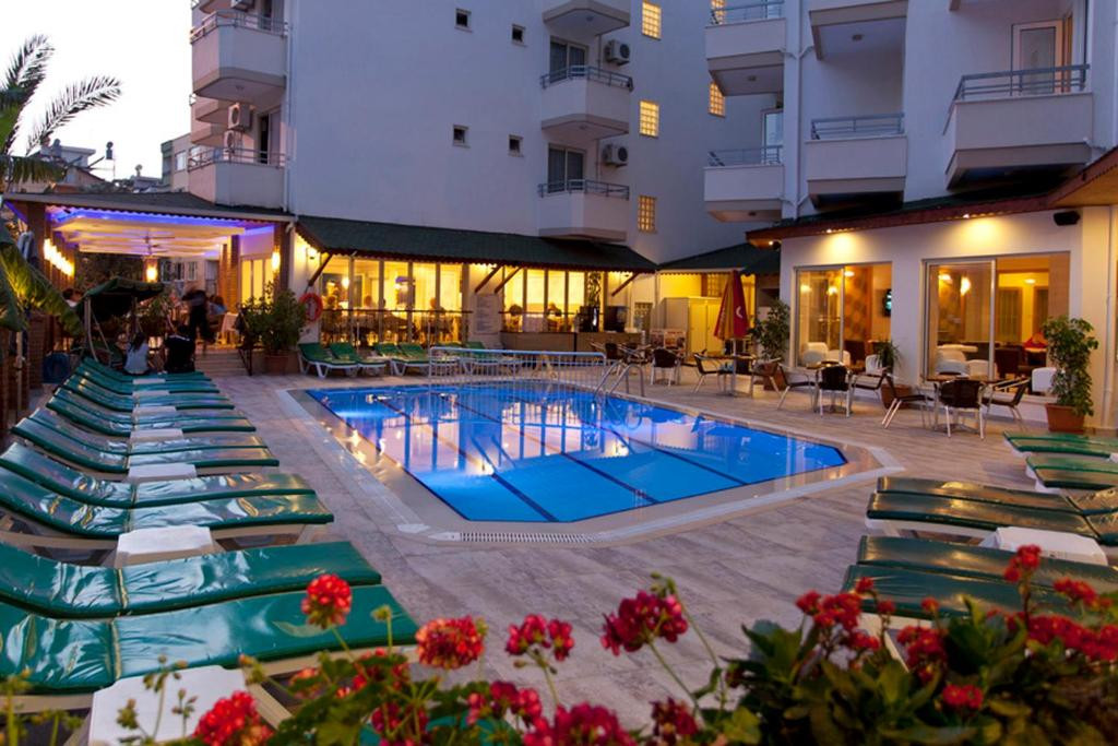 Отдыхала в отели в августе. Приехали в 18:00 с Анталии, заселили сразу. Номер был на 5 этаже, чистый, но вид уставший (нужен ремонт), сантехника вся работала, вид из окна красивый. В бассейне не купались, но проходили мимо, он небольшой, но чистый. Кухня меню не очень разнообразное, но эти и не 5*, всегда можно найти что покушать. Повара и официанты стараются. Плюсы - рядом с пляжем Клеопатра, можно добраться до ближайших магазинов, достопримечательностей.