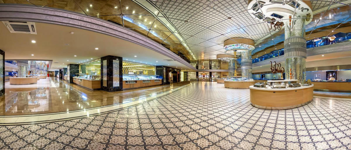В данный момент отдыхаем в этом отеле. Заехали 12.06.23. Первое, что хочу отметить, это за 10 ночей на меня и ребёнка одно только проживание обошлось в 138 тыс (без перелёта). Цена отеля того не стоит. Отель сам по себе очень большой, не сама территория большая, а именно отель. Нас заселили в блоке С, из которого по лабиринтам, из лифта в лифт каждый раз приходится добираться либо до выхода к бассейнам, либо к ресторану. До пляжа также нужно идти пешком, это хоть и первая линия, но нет, минут 10 от номера отеля занимает. Отдельно скажу про ресторан. Это просто шок. Таких грязных тарелок после Посудомойки я ещё не встречала. Остатки еды, непромытое моющее средство и так далее. И как вишенка на торте - в один из дней я обнаружила в еде ноготь… Чуть не вырвало, аппетит был испорчен. О тарелках с разводами говорила неоднократно, но реакции ноль. Одну звезду поставила как раз за то, что работники отеля будто игнорировали эти замечания. Также и другие отдыхающие замечали эти тарелки и с недовольным видом шли накладывать в них еду. Кстати, с едой есть проблемы. Выбор блюд - он вроде есть, но его как бы нет… Элементарная картошка фри подаётся картошкой по-деревенски. То есть картошки фри там нет, она появилась в начале нашего отдыха и пропала… А дети многие только ее и едят. Остальные блюда постоянно повторяются. Из гарниров - макароны, макароны, макароны, пюре, рис, овощи паровые. Суши (якобы суши) - были 1 раз - но это не суши))) В рис кладут полувареную морковь, видимо чтобы удешевить блюдо. К Роллам не было даже соевого соуса (странные роллы). Также в этот день давали креветок, странные на вкус. Почти все фрукты незрелые и твёрдые, как и дыня, она вообще не сладкая. Видимо руководство отеля считает, что такой комбикорм подходит для их гостей! Арбуз только иногда был сладким, и на том спасибо. Очень большая площадь ресторана, но что-то все размазано так по нему, какие-то непутевые нарезки, куча солений, которые особо никому не нужны… В общем, питание это основополагающее. А его тут нет. Сама территория, повторюсь, не особо большая. Очень большие холлы у самого здания отеля. Просто пустые залы, через которые ты идёшь и идёшь, и идёшь… выматывает. А если нужно вернуться в отель - переодеться или что-то забрать, опять весь путь проходить. Это треш. Насчет уборки - уборка на 3. Пыль может лежать годами, пока ты об этом не скажешь. За неделю нашего проживания постель не сменили… Пол моют - по центру прошлись сырой тряпкой, даже не выжимают ее, а по бокам грязь. Когда заехали в номер, в номере на обивке стула был песок! Неужели нельзя было сделать качественную уборку перед заездом нового гостя!? Позорище! Этот отель никому не советую! Ведь оплачивая это проживание, вы платите за сервис, за питание, за проживание и уборку в номере. А море - за море вы не платите… Оно доступно всем, кто отдыхает в Турции, поэтому море это не заслуга отеля. Пляж не скажу, чтобы грязный, но вечно какой-то бардак, что-то валяется.