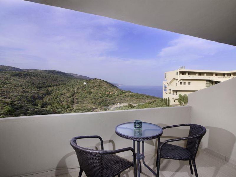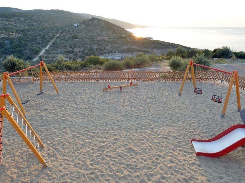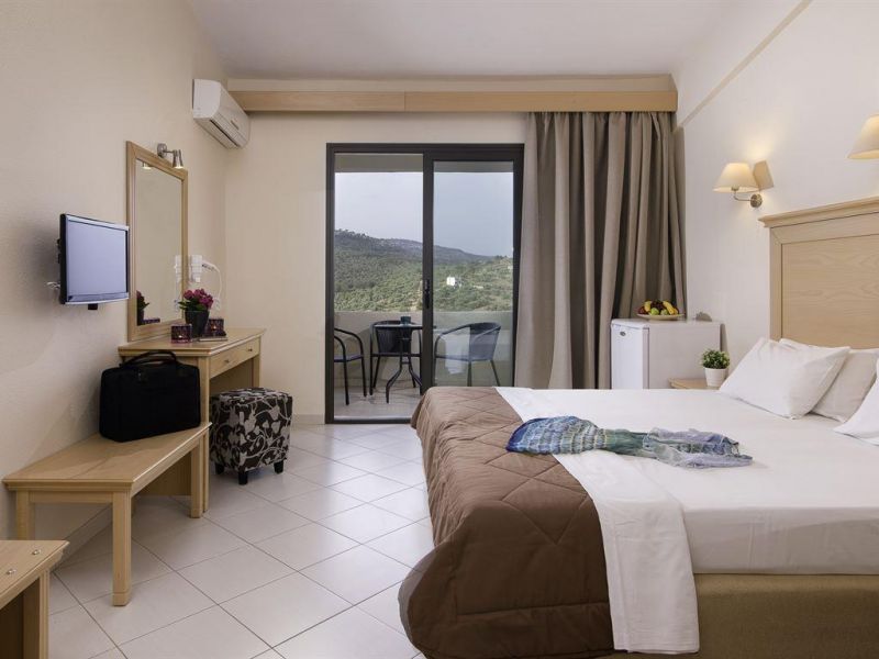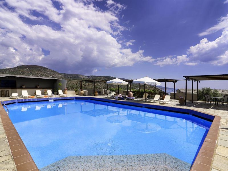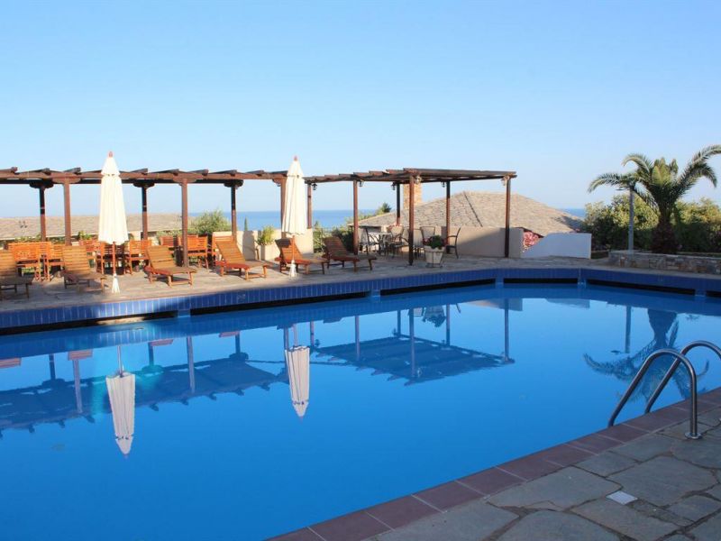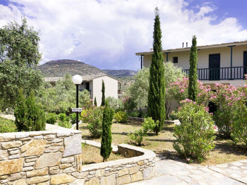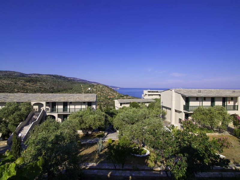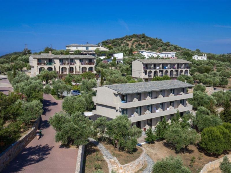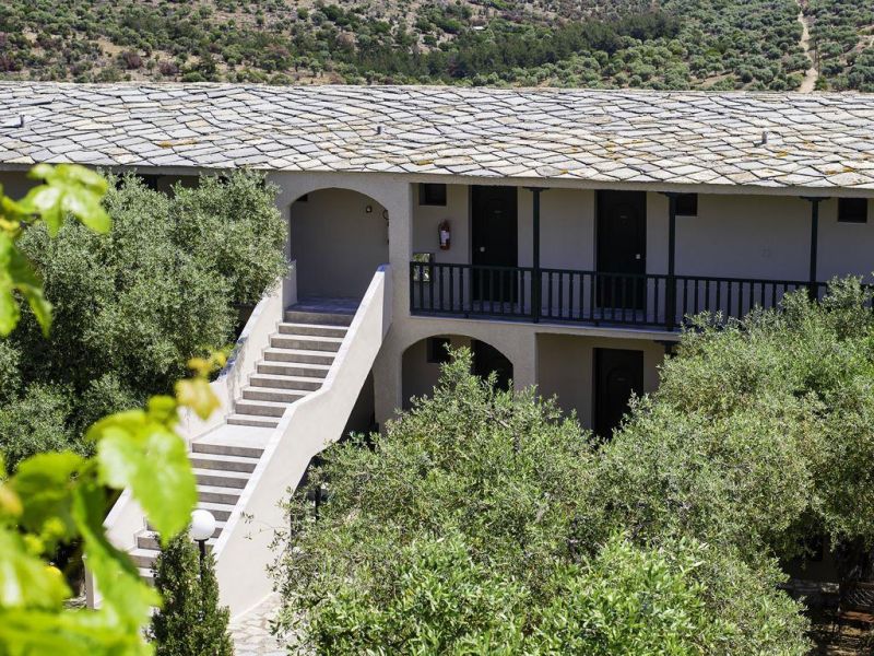 Расположен в южной части острова, в районе Астрис, в 7 км от живописной деревушки Потос, в 10 км от пос. Лименарья, в 33 км от порта Прину, в 40 км от порта Лименас. 3 двухэтажных здания. Обновлен в 2013 году.