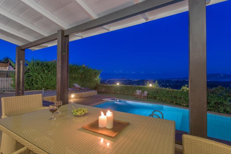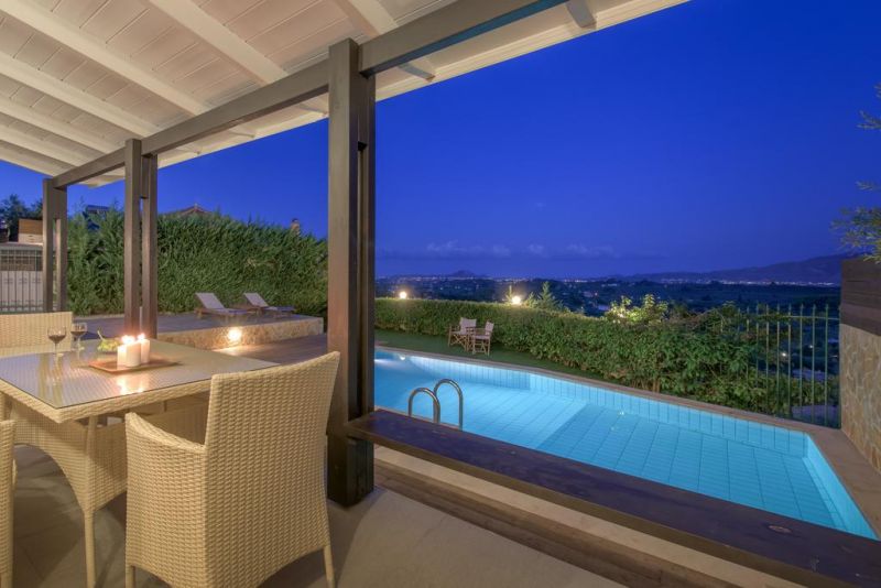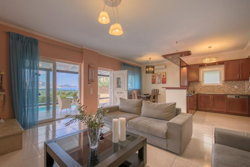 Виллы расположены на юго-востоке острова, в поселке Литакья. Это небольшой поселок, расположенный в окружении оливковых рощ. Столица острова - 10 км, порт - 10 км, аэропорт - 10 км, пляж «Агиос Состис» – 2 км, таверны, магазины - 300 м.