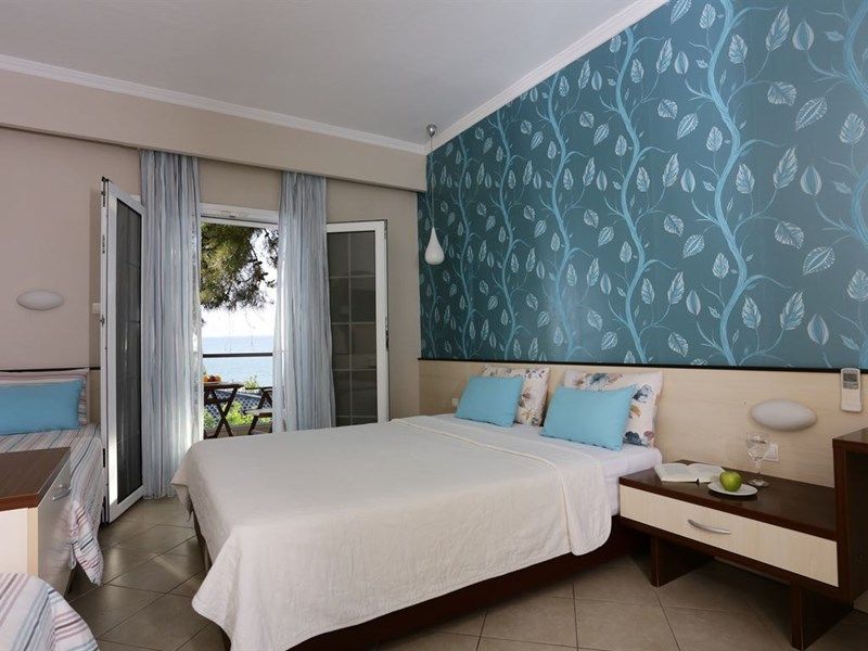 Расположен между поселками Певкари и Потос, в 13 км от порта Принос, в 34 км от порта Лименас острова Тасос, в 45 км от аэропорта «Мегас Александрос» г. Кавала. Состоит из центрального здания и бунгало.