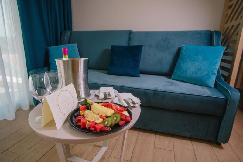 One Bedroom Suite Sea View (49 кв.м, max 2+2/3), вид на море, спальня и гостиная, разделенные дверью, ванная открытого плана, номера расположены в здании VIP-номеров