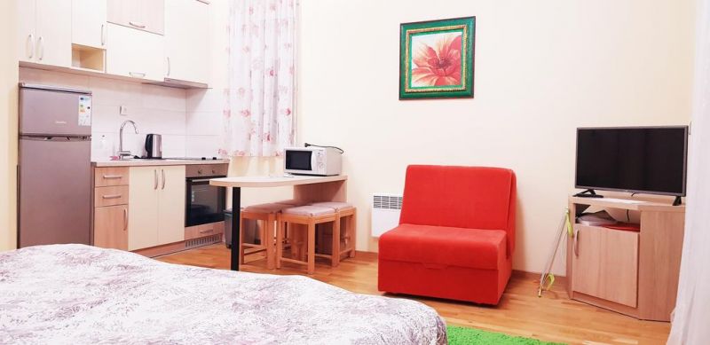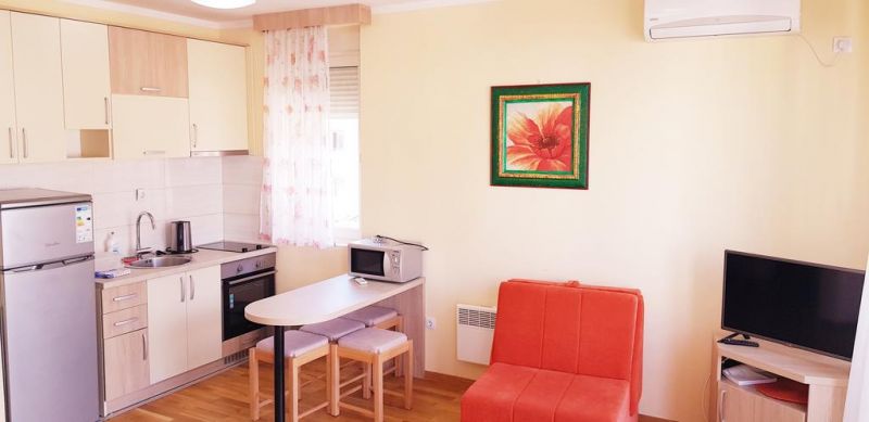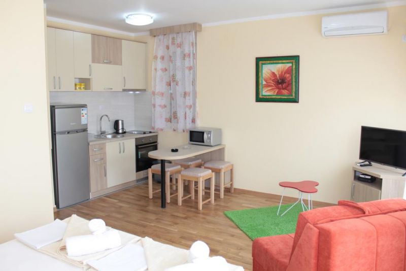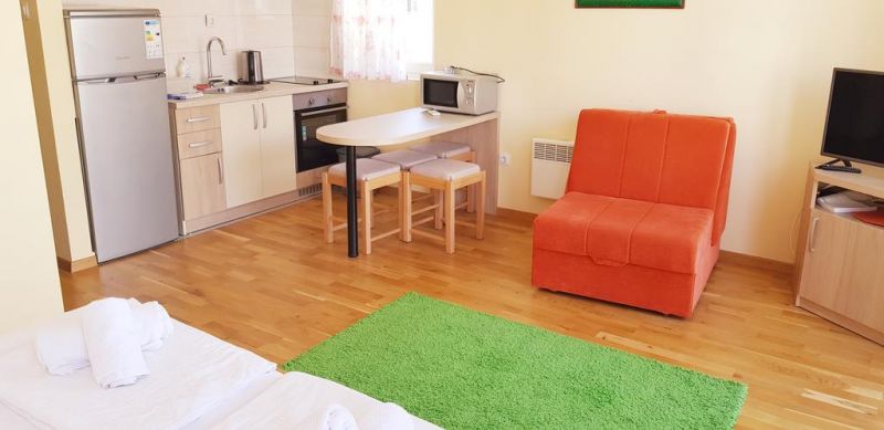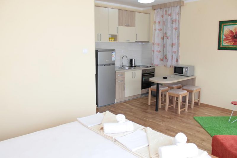 В центре Будвы, в 100 м от центрального рынка и супермаркета, в 100 м от почты, в 250 м от Старого города и пляжа Могрен. В 30м ближайший ресторан «L&M». В 23 км от аэропорта Тиват и в 60 км от аэропорта Подгорица.