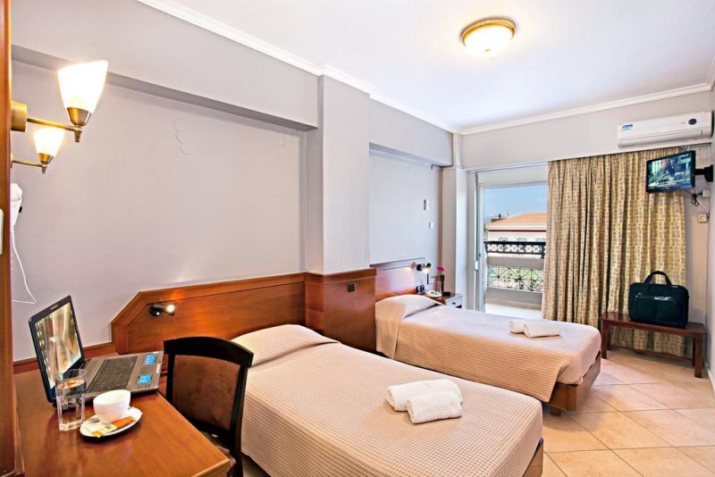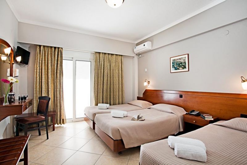Городской отель. Состоит из двух небольших пятиэтажных зданий. Простота стиля, комфортабельные номера, интернет, обслуживание номеров. Рядом расположено множесто магазинов, ресторанов, баров и традиционных греческих таверн.
