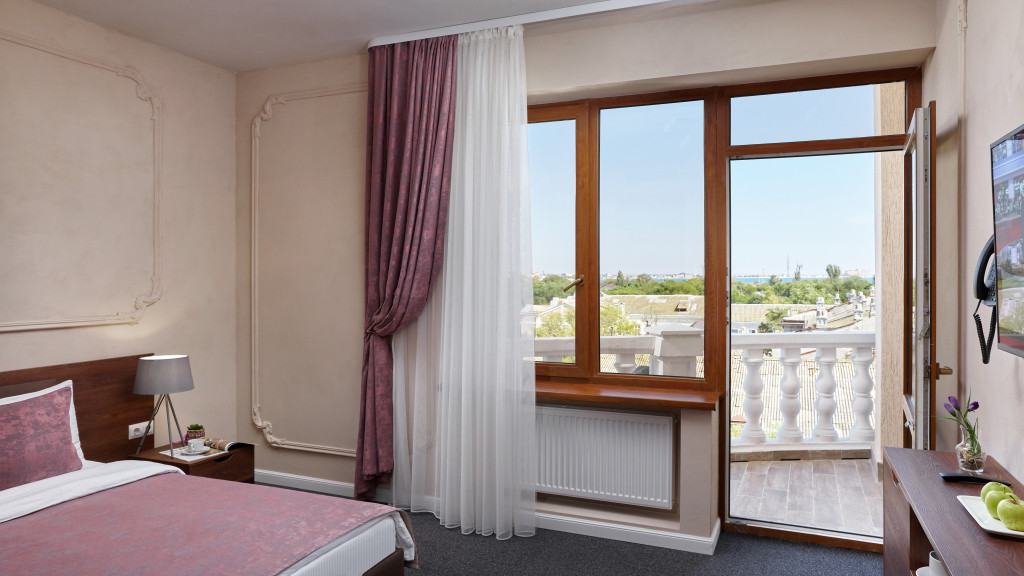 2-местный клубный с балконом: однокомнатный номер с балконом, 25 кв.м, количество гостей в номере 2+1 (доп. место еврораскладушка), двуспальная кровать
