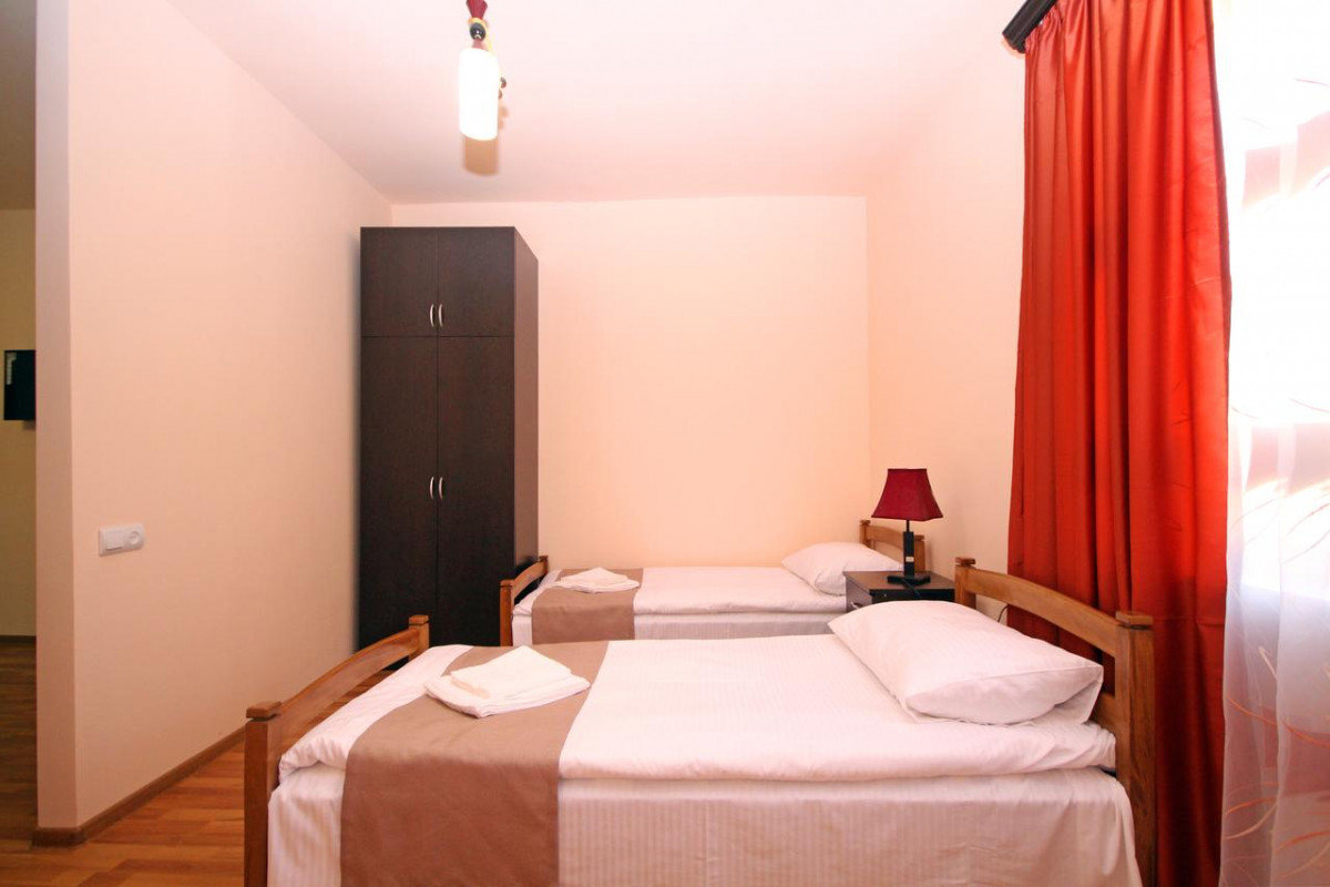 Небольшой отель в тихом районе. Гостей ждут уютные номера и доброжелательный персонал. Состоит из 3-этажного здания. Всего 9 номеров.