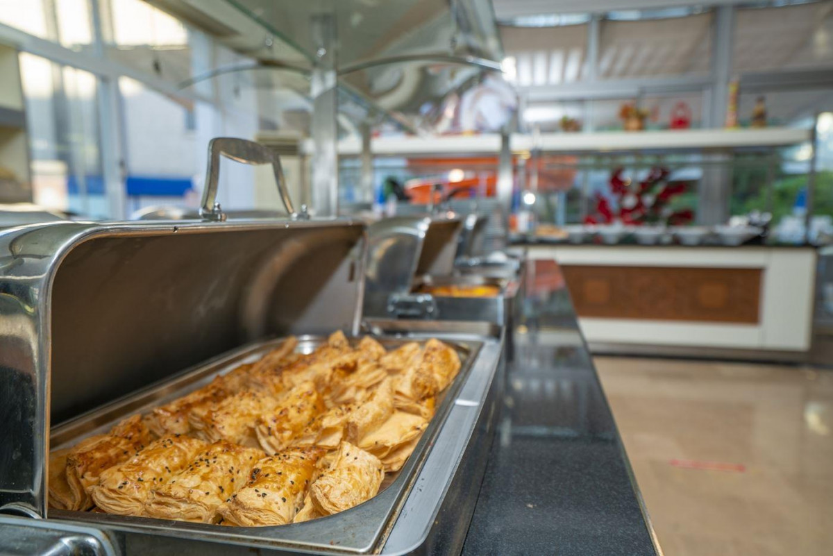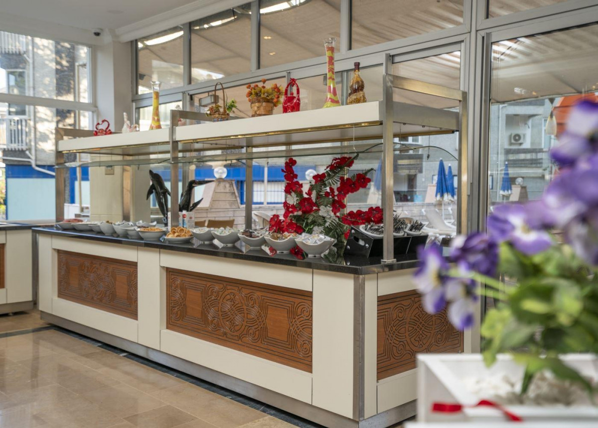 Вообще-то это не отель! А какая-то студенческая общага, переделанная в отель. Помещения ресторана нет! Пищу принимали или в холле рядом с рецепцией (6 мизерных столиков), или на улице рядом с бассейном на духоте. Звёзды нагло нарисованы. Это просто надувательство. До моря по шагомеру 1300 м. На балконе даже морем не пахло. В спальном районе расположение этой ночлежки. Питание отвратное. В основном, самые дешевые привозные замороженные полуфабрикаты. Своего шеф-повара не было. Были кухонные работники, которые в полутемном помещении резали зелень на салаты. Мы ходили на близлежащий рынок, покупали фрукты и ягоды, брали там же на ужин рыбу гриль. Вообще, в Алании больше половины таких «отелей» с нарисованными звёздами. Можете зайти на сайт министерства культуры Турции, и убедиться, что в списках отелей со звёздами его нет.