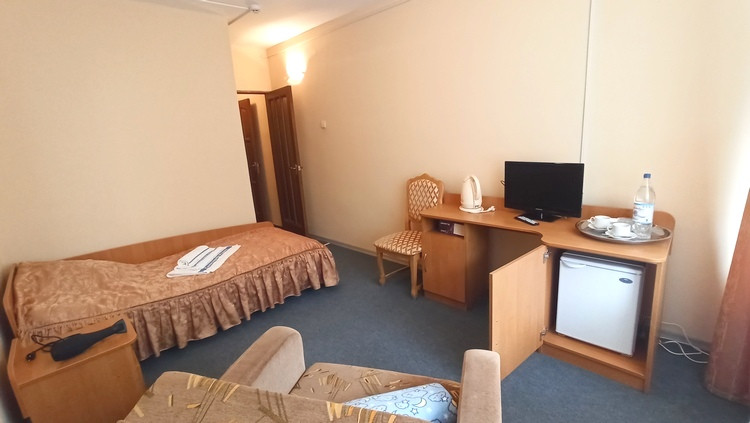 1-местный 1-комнатный номер (макс. 1+1 чел., телевизор, душ, умывальник, 1-спальная кровать, туалет). Доп. место — кресло-кровать, предоставляется без ограничений по возрасту.