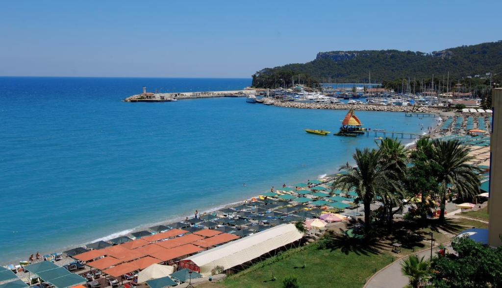 В 55 км от аэропорта г. Анталья, в Кемере, в 800 м от собственного пляжа.