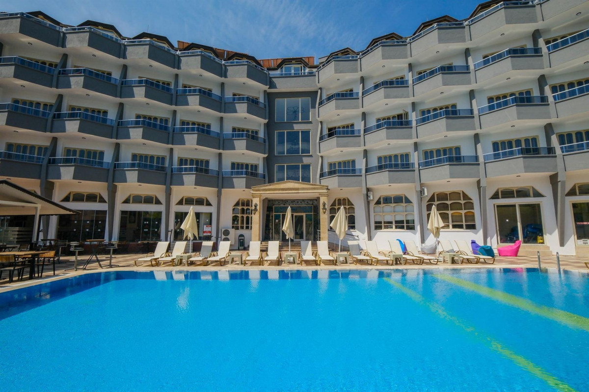 Отдыхали в июне 2025 года с 14 по 28.06 с детьми 8 лет. Отель очень понравился. Для 3* супер. Персонал приветливый, номер чистый, прибирают каждый день. В столовой чисто, еды много, курица, рыба, овощи, рис, макароны, из фруктов всегда вкуснейший арбуз, апельсины, яблоки. Бассейн чистый, вода прозрачная, дети накупались, горку включают по времени. Из алкоголя пиво-хорошее, наливают в стеклянные бокалы, вино белое, красное, раки. Есть алкогольный коктейль, безалкогольный, пепси, спрайт, фанта, напитки, ло 22-00. На пляж ходили общественный налево по набережной. Рядом есть Мигрос, Бим, Шок. В сторону пляжа есть А101. Море в июне для нас холодное. Раньше всегда летали в Анталию. Здесь бьют ключи, поэтому море не такое тёплое. Сам посёлок Ичмелер очень красивый, окружён горами, много зелени, цветов. Дорога на пляж вдоль живописного канала с лавочками, можно посидеть, отдохнуть. Вечером есть где погулять, много торговых точек, магазинов, кафэшке. До Мармариса ходит долмуш, 40 лир, до центра 15 мин. Отель рекомендую. Вернулась бы снова в него.