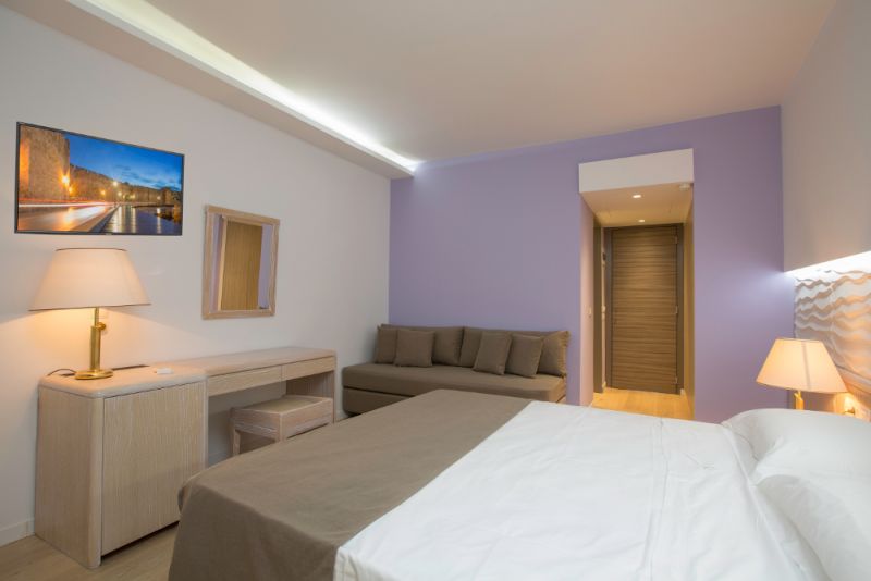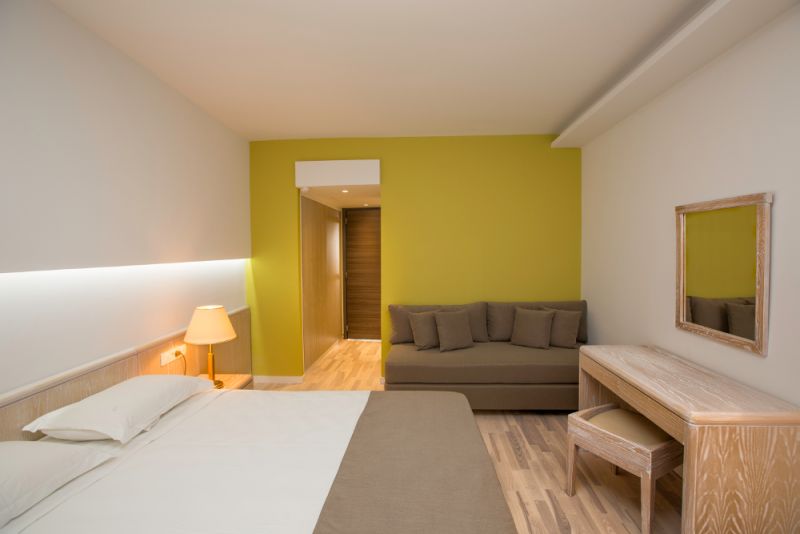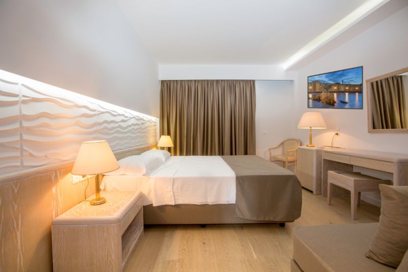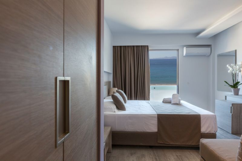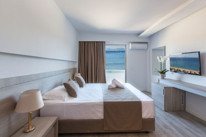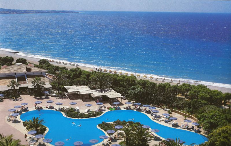 В 12 км от аэропорта, в 5 км от центра г. Родос, через дорогу от пляжа.