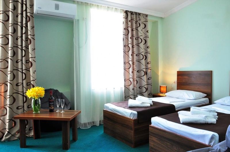 Отель расположен в курортном поселке Кобулети, который издавна славится свои лечебным климатом. Отель расположен в центре, рядом с центральной площадью. Недалеко от кинотеатра, супермаркета. До рынка можно добраться за несколько минут. До жд станции и автовокзала - за 5-6 минут. До моря всего 70 метров, через дорогу.