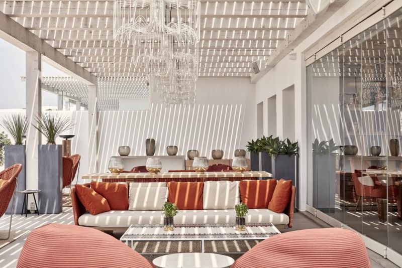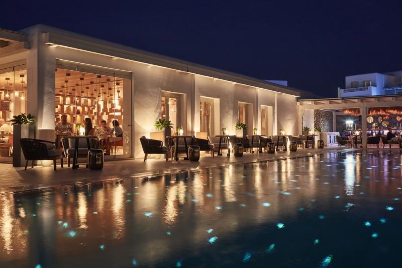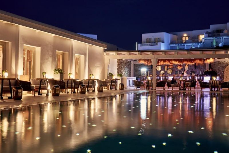 Оель расположен на вершине холма в Миконосе, в 1 км от ветряных мельниц, в 2 км от аэропорта.