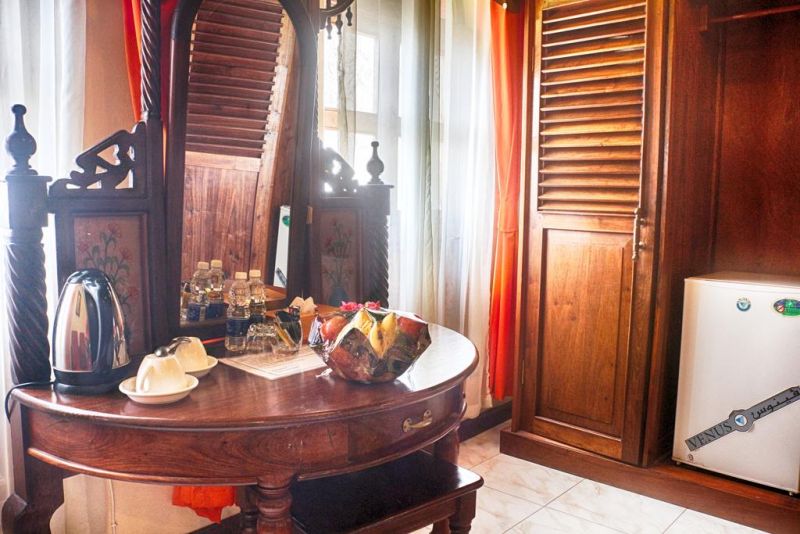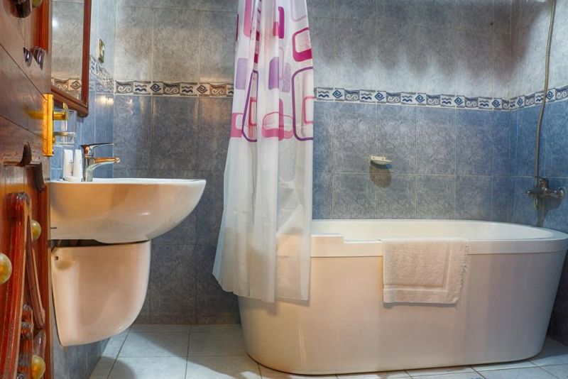 Отель находится в переулке, с чемоданами идти от дороги далековато, трансфер проехать не может, там недалеко дом стоит, который разваливается, его деревянные перекрытия держат. В отеле берут за человека 1 доллар за проживание за один день. В кафе для завтраков, разбирают еду за минуту, такое ощущение, что не рассчитывали, что люди при одном завтраке, пытаются покушать поплотней. Персонал, удивлен, большую часть раньше были Итальянцы и они себе этого не позволяли как русские. Если у них возникает подозрение, лично мы брали всегда сумку с документами и деньгами. Нас за 10 дней 2 раза просили открыть сумку и смотрели, не забрали ли мы что-то. Это неприятно. В номерах сантехника ужасная. Унитазы качаются, раковины давно просят замены, ржавчины на полотенцесушителях, вешать вещи нельзя. Душ вообще отдельная тема. Никто ничего не хочет чинить. Ответ, спит сантехник. Вечером приходит дама и прыскает керосином, пахнет так, что не выдыхается до утра и как правило у нас с дочкой была головная боль. Мы открывали дверь, нам делали замечание, чтоб закрыли. Бар не работает. Нецелесообразно им. В близи отеля очень дорогие кафе. На набережной, продают морепродукты, которым уже не одна неделя их реализации. У нас многие травились. Лично видели, как приносят омаров, креветок, кальмаров, к 17 часам открытие рынка на набережной, разворачивают из газеток продукцию.
