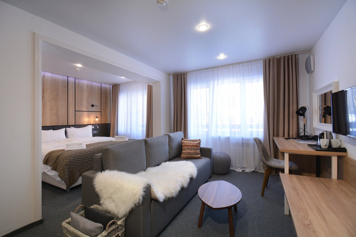 Парк-отель расположен в живописном лесном массиве, в 500 м от горнолыжной базы «Гора Соболиная» (500 м).