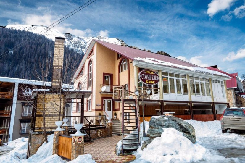 В жилом 3-х этажном корпусе гостиницы Домбая «Старый Клен» — на 1-м этаже расположен ресепшен и кафе гостиницы. Номера оснащены всем необходимым для проживания. Рядом находятся как магазины и кафе, так и канатные подъёмники что удобно для любителей горнолыжного спорта.