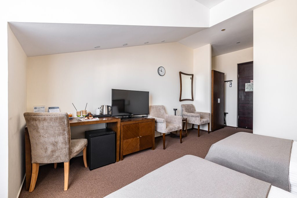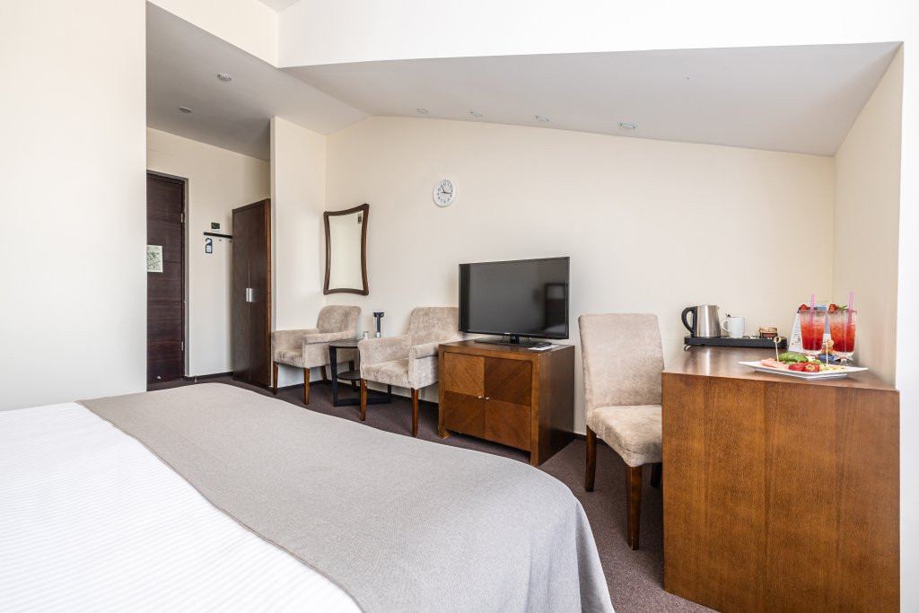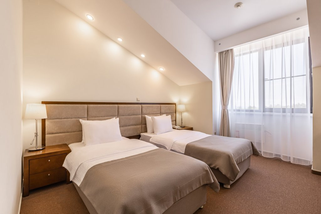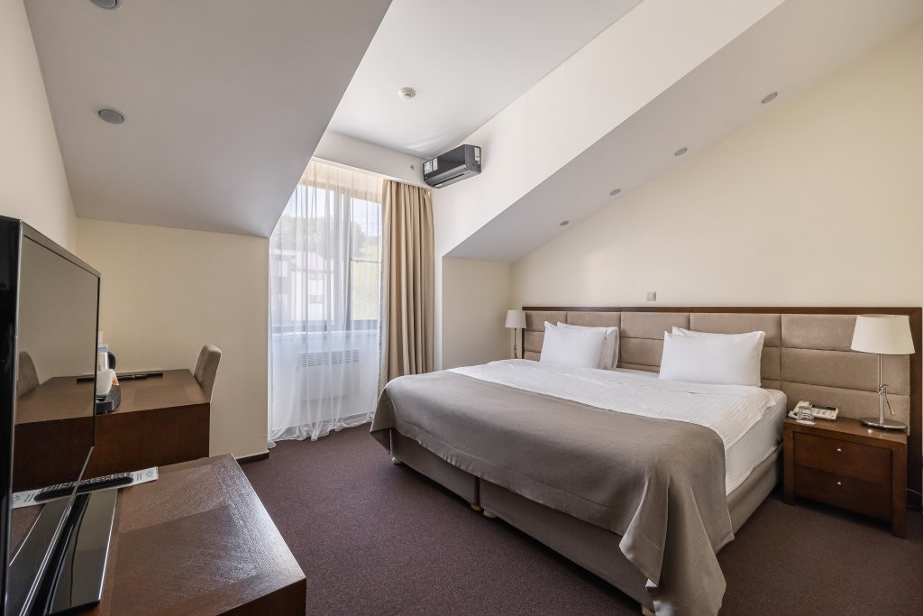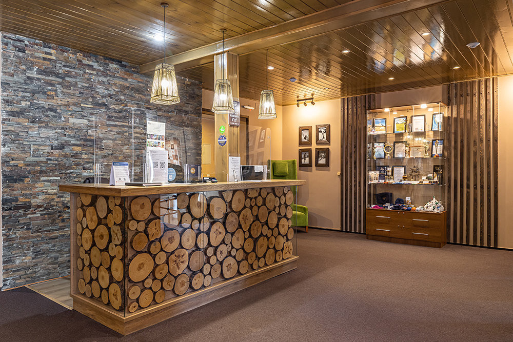 Отель размещается у подножия горы, в нижней точке трасс, что позволяет организовать катание отдыхающих «от порога» (система skiin/skiout). Представляет собой 2-этажное здание без лифта